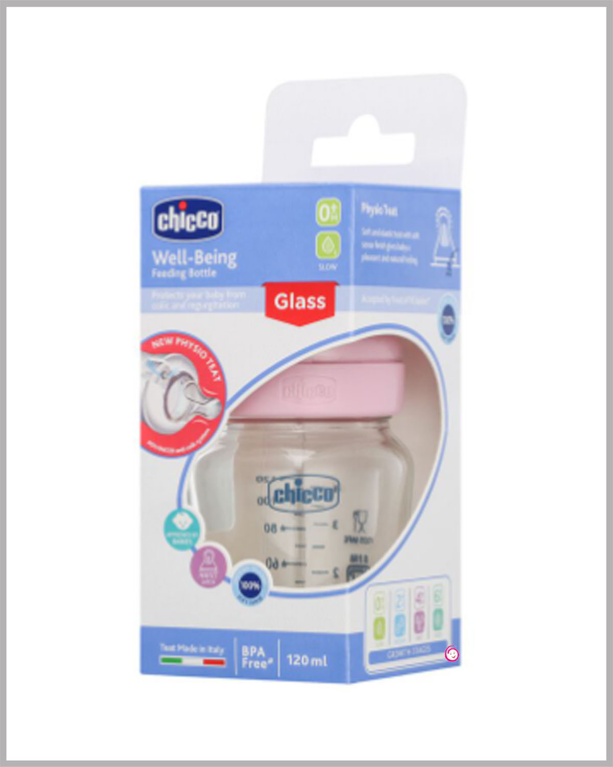 Chicco Well-Being Glass Feeding Bottle - Pink
