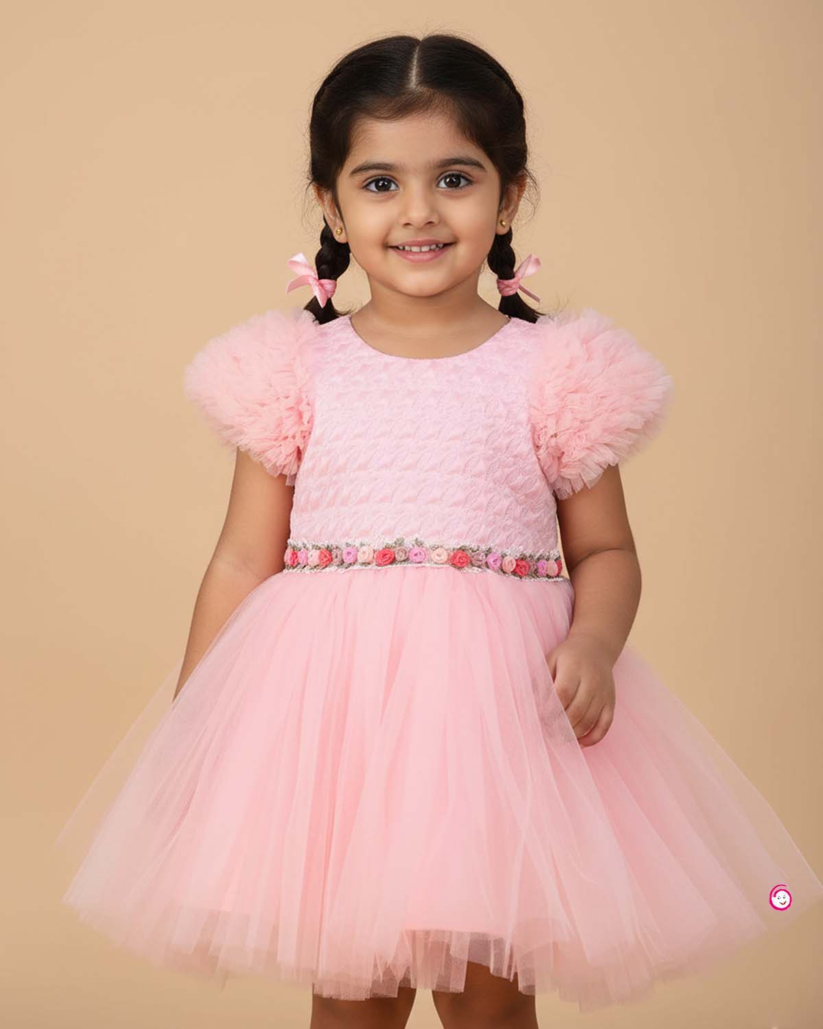 Girls Ethnic Embroidery Work Frock - Dark Pink