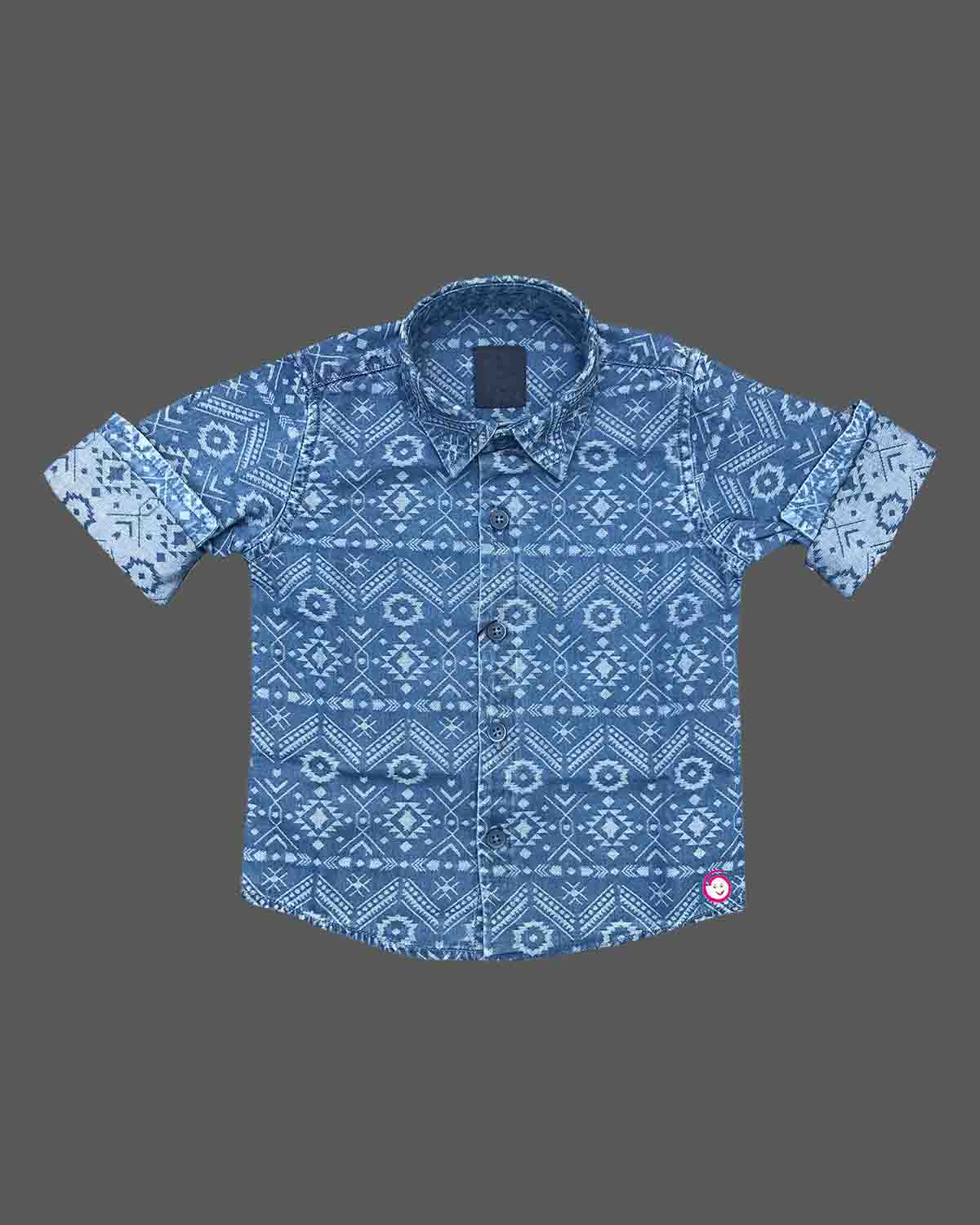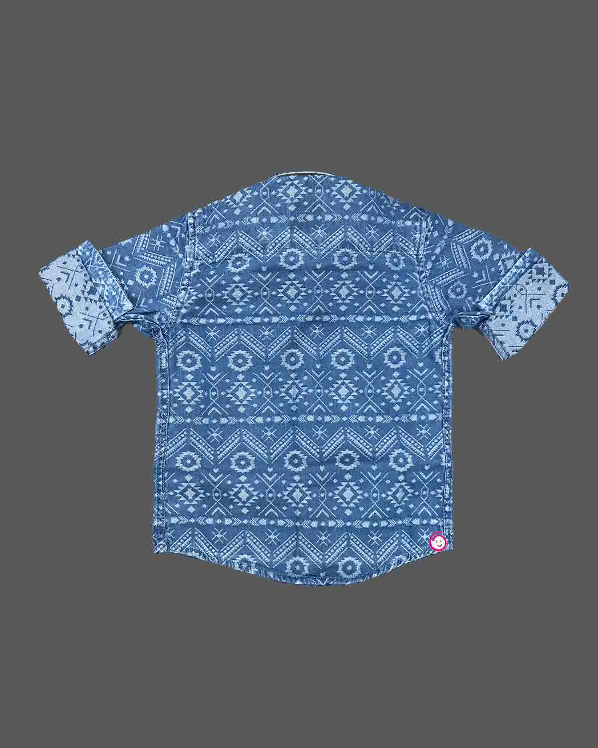 Boys ethnic kurta dhoti set with pearl necklace -Sky Blue