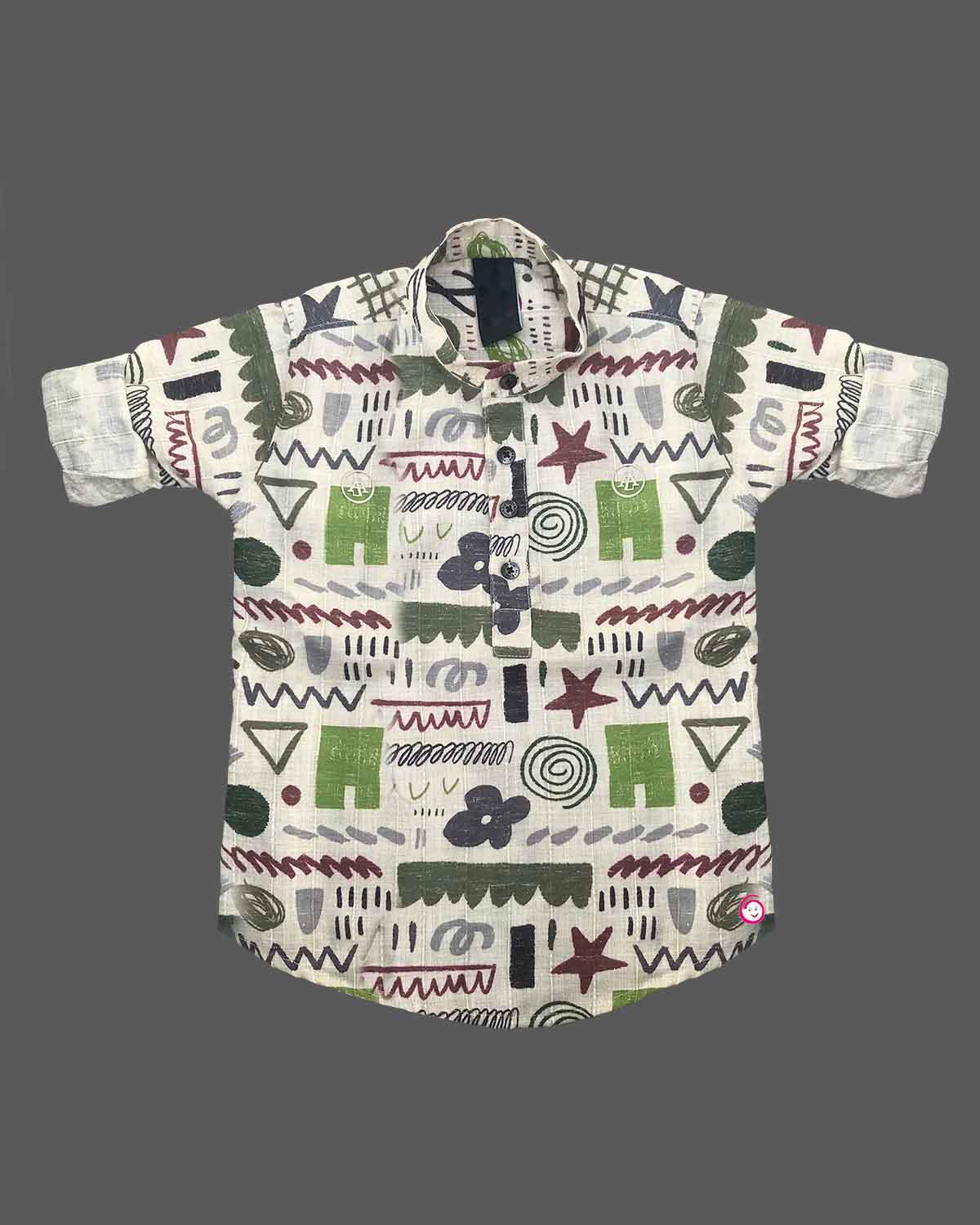 Boys design printed kurta shirt - Half White