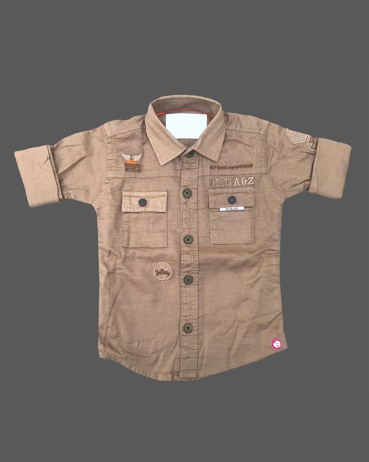 Boys casual printed shirt with short - Brown