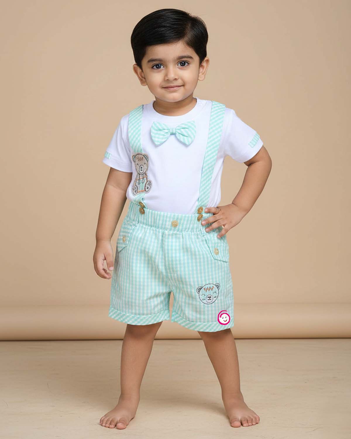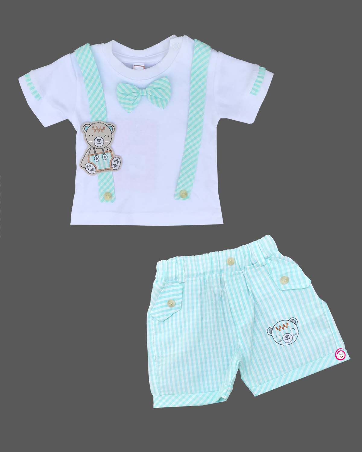 Boys bear & checked printed t-shirt & shorts - Green