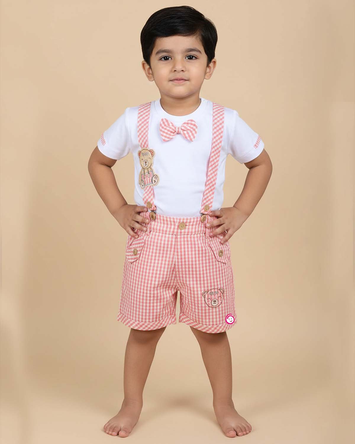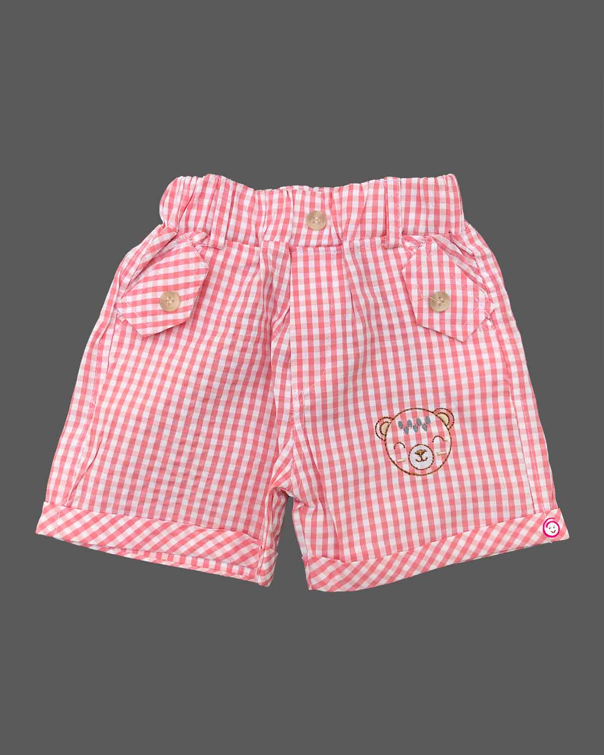 Boys bear & checked printed t-shirt & shorts - Pink