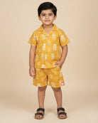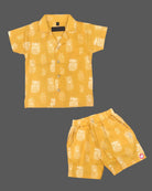 Boys casual printed shirt & short - Yellow