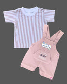 Boys striped t shirt with dungaree set - Pink