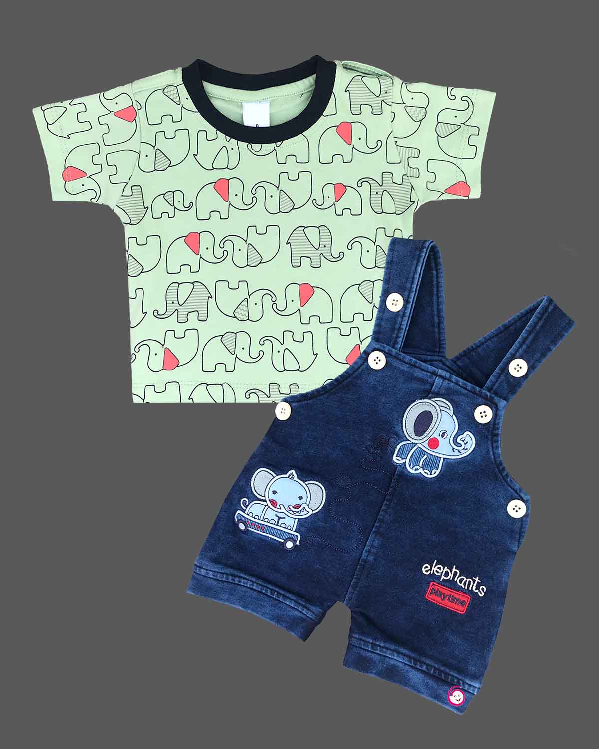 Boys half sleeve t shirt with dungaree set - Sky Blue