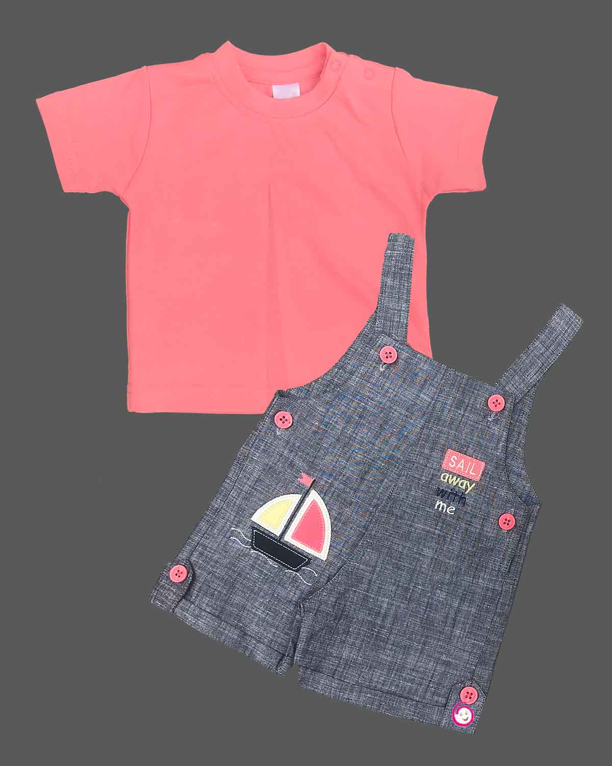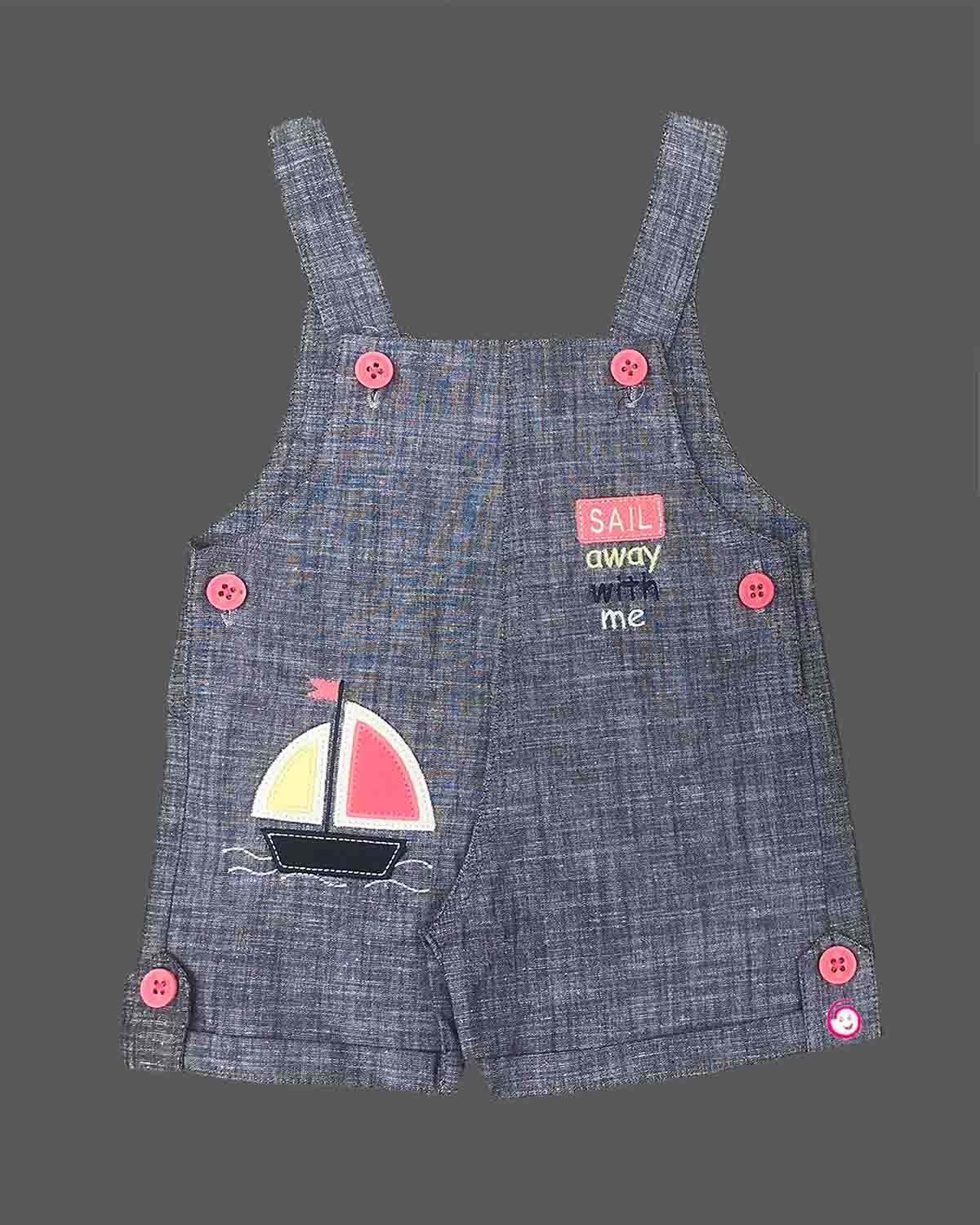 Boys half sleeve boat printed dungaree set - Grey