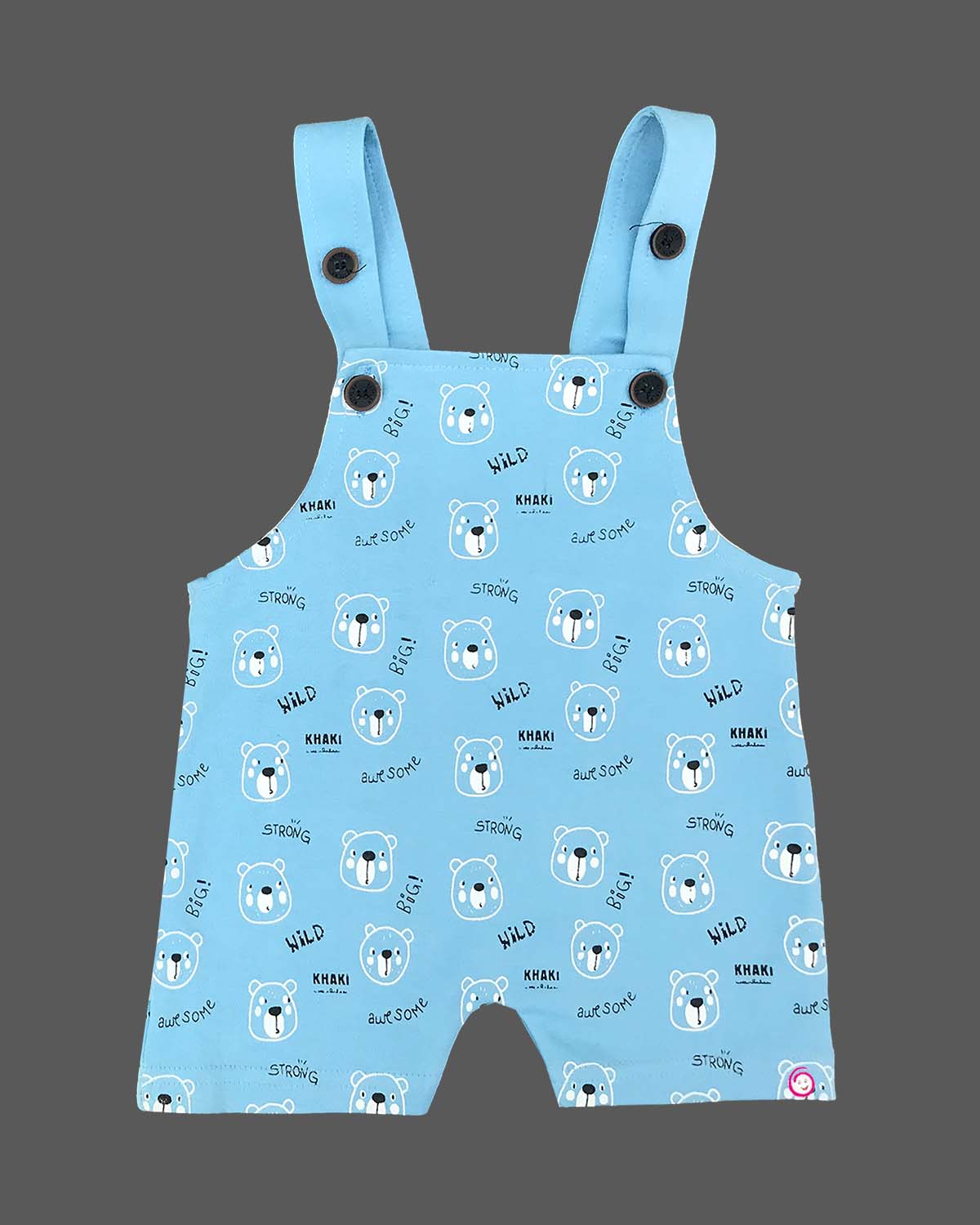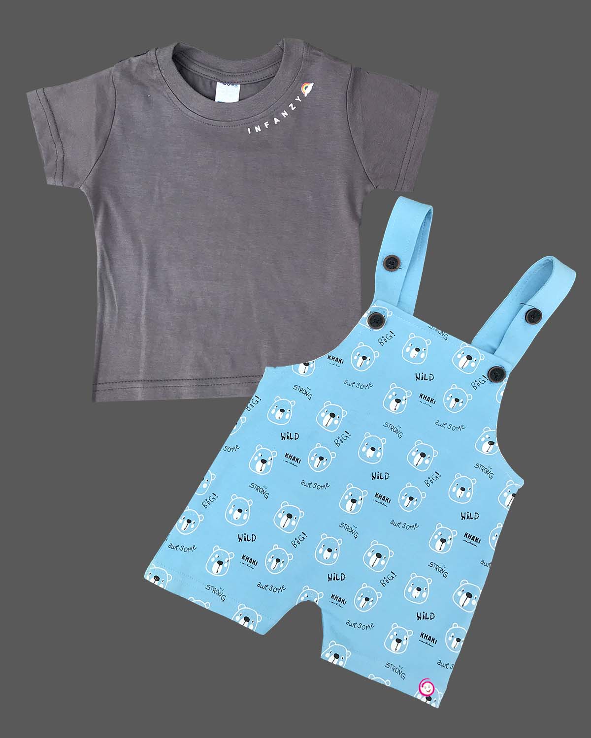 Boys plain t-shirt with bear print dungaree set - Sky Blue