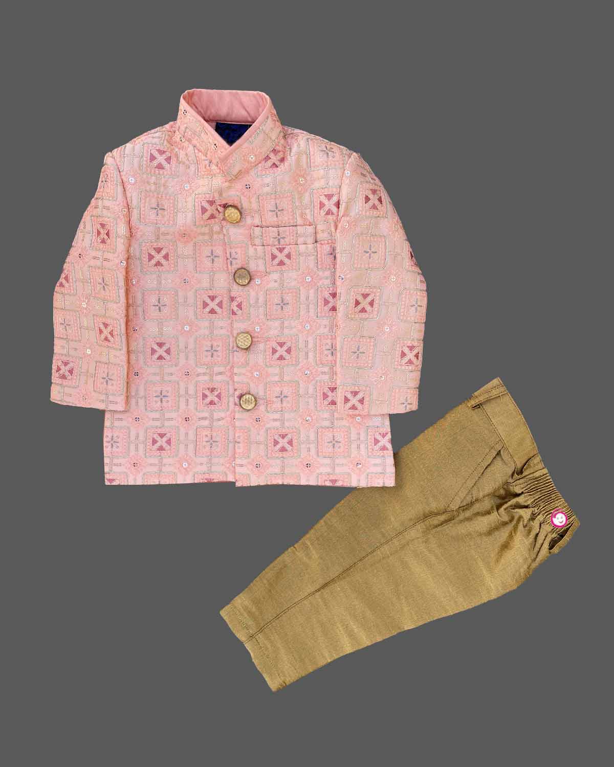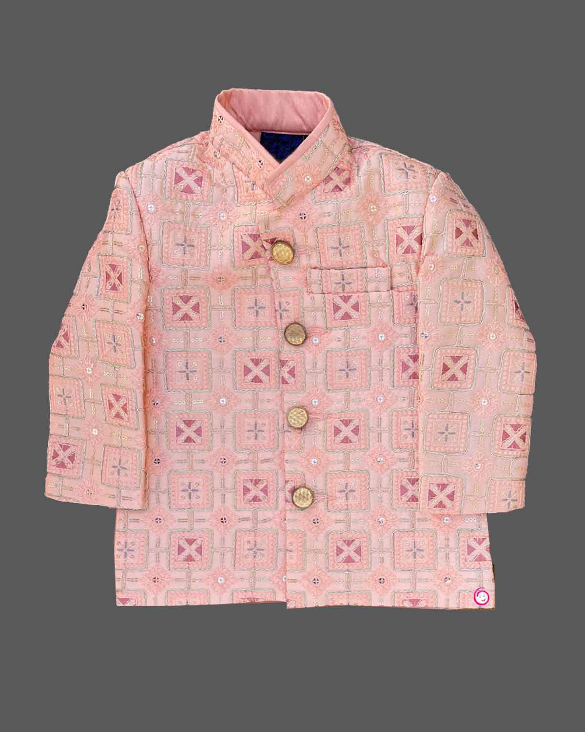 Boys diamond printed with sherwani set - Peach