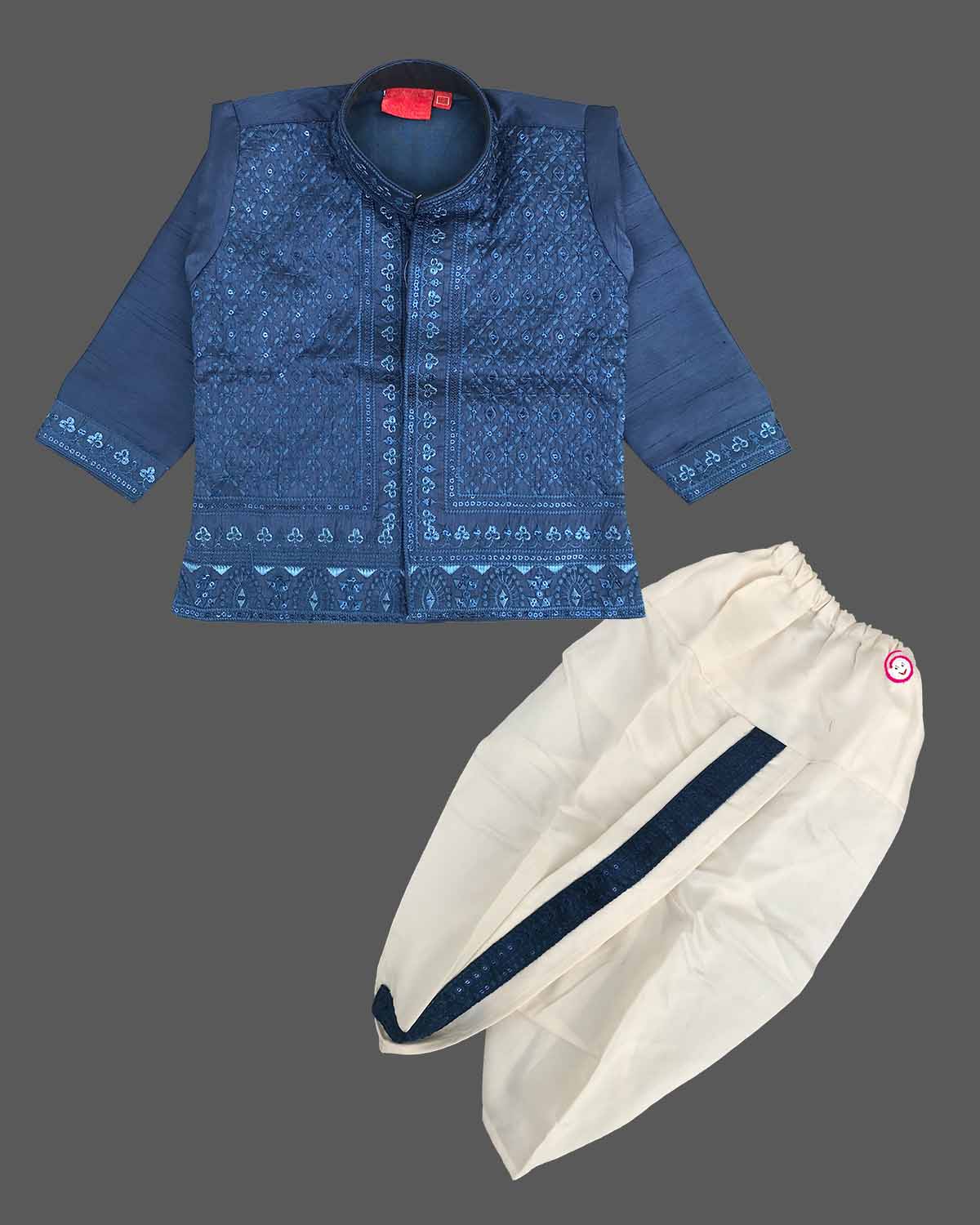 Boys elegant design kurta with dhoti set - Navy Blue