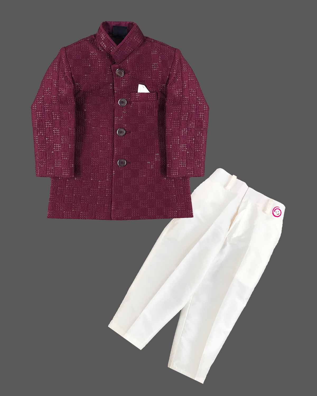Boys elegant design sherwani & pant - Burgundy