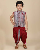 Boys embroidery kurta and dhoti - Burgundy