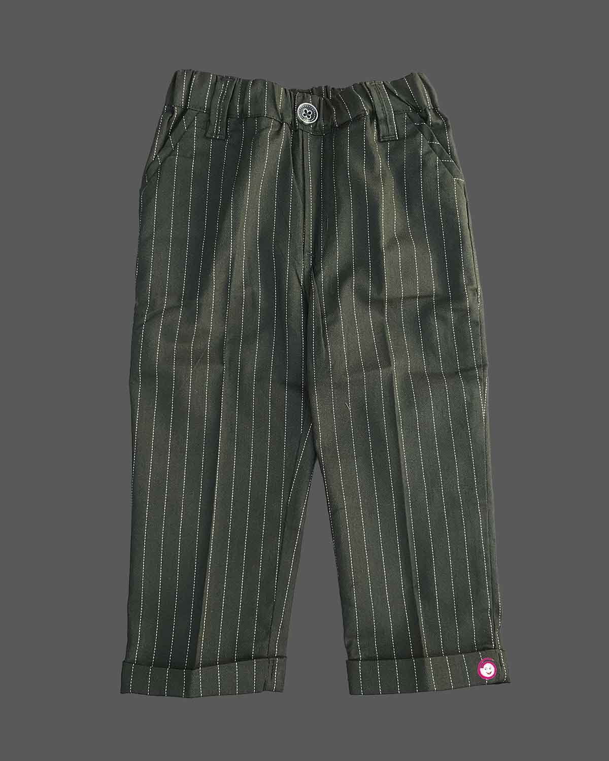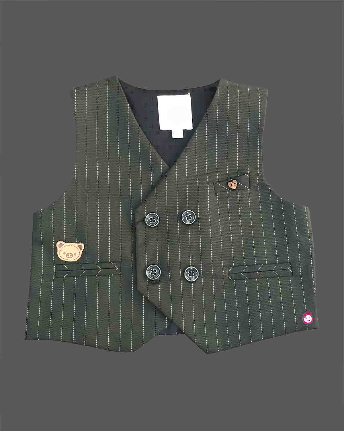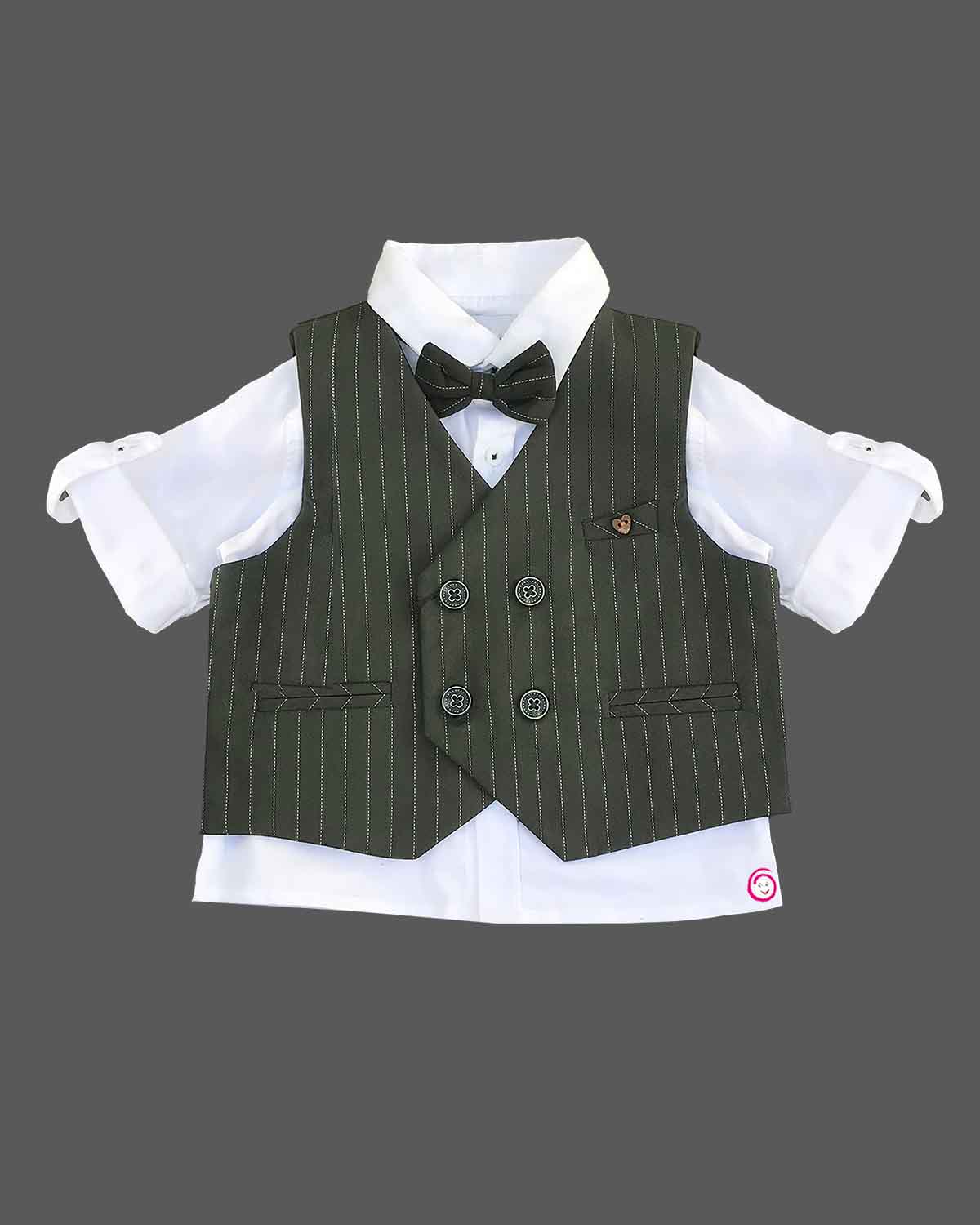 Boys full sleeve stripe print waistcoat set - Dark Green