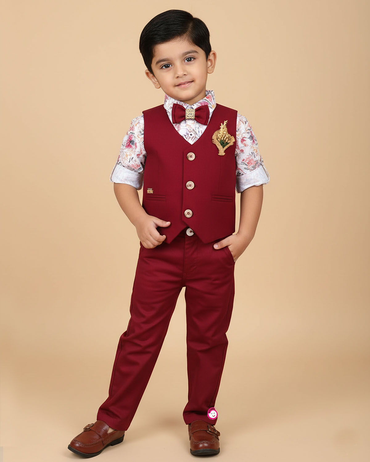 Boys full sleeve with waist coat set - Maroon
