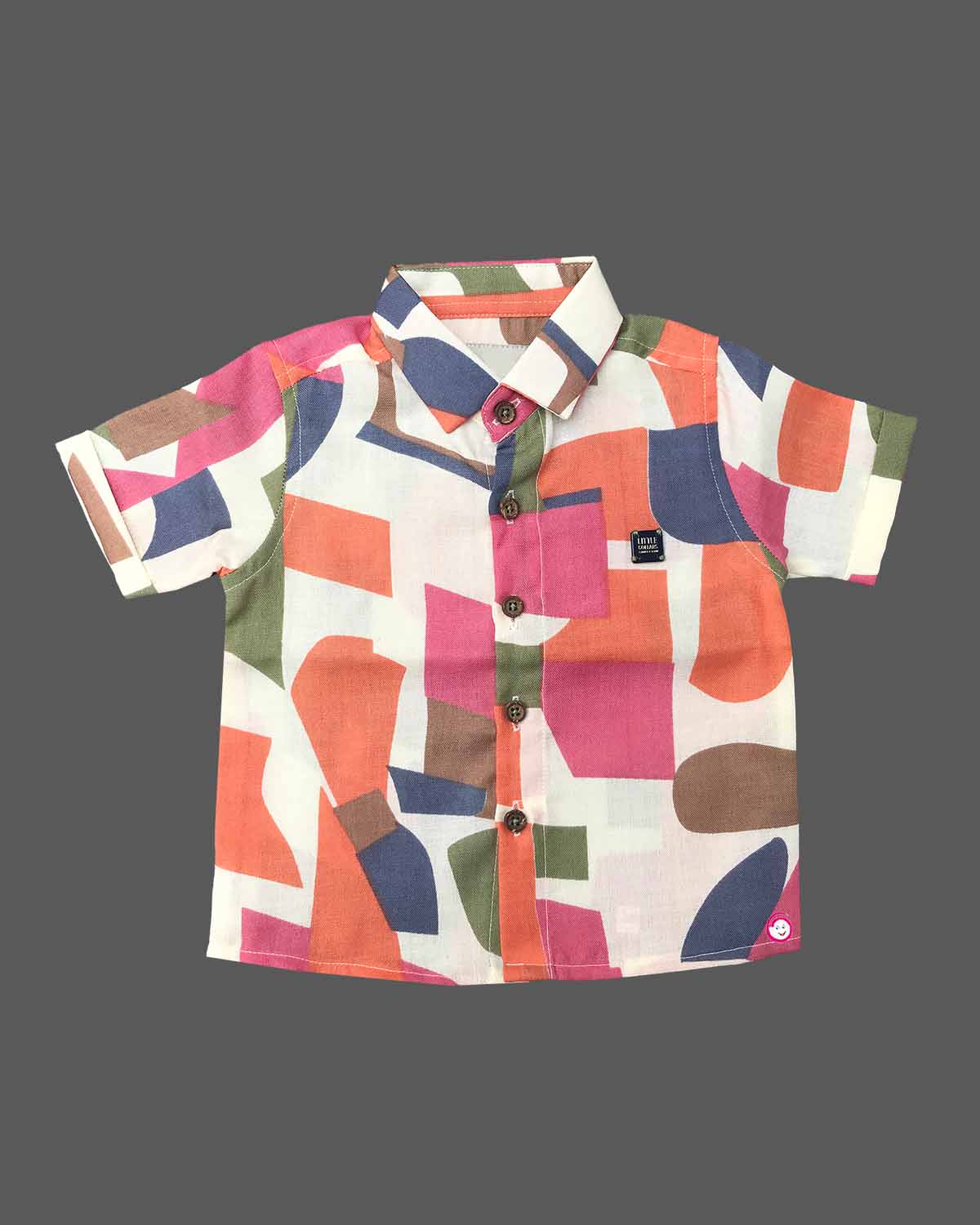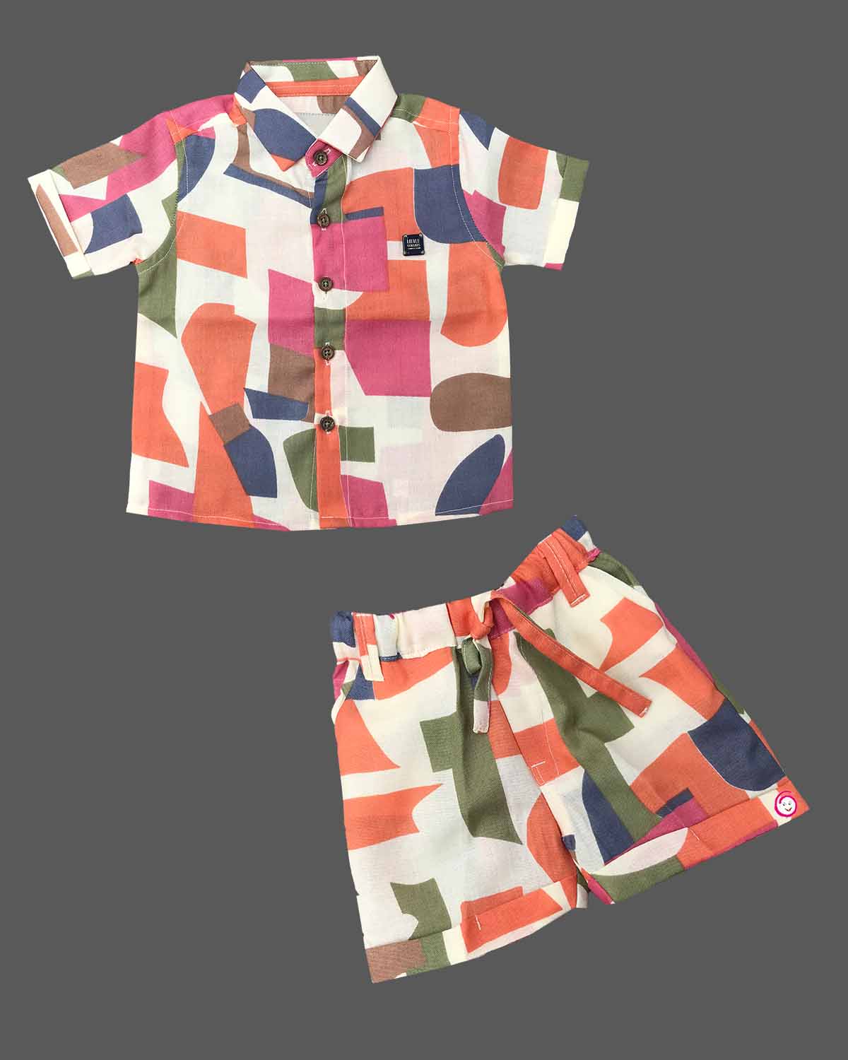 Boys casual printed shirt with short - Orange