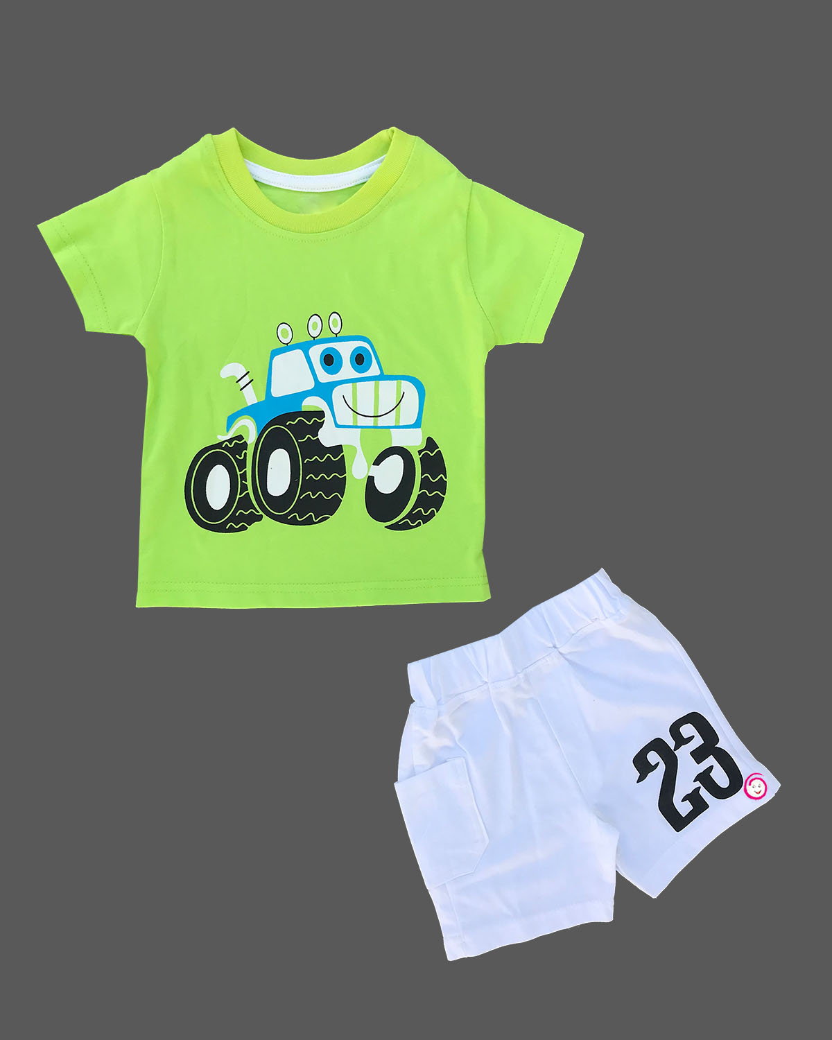 Boys jeep printed t-shirt with shorts - Lime Green