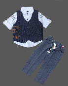 Boys elegant printed waistcoat set - Blue