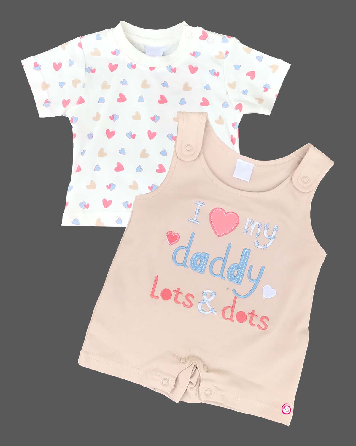 Boys i love daddy print tee with half romper - Beige