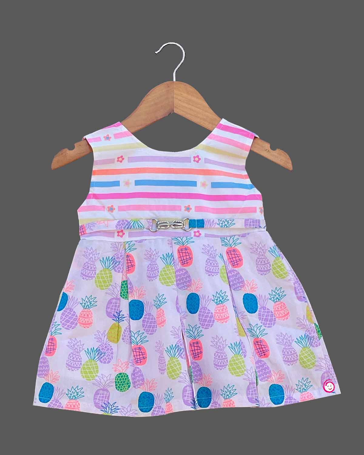 Girls pineapple printed casual frock - Violet