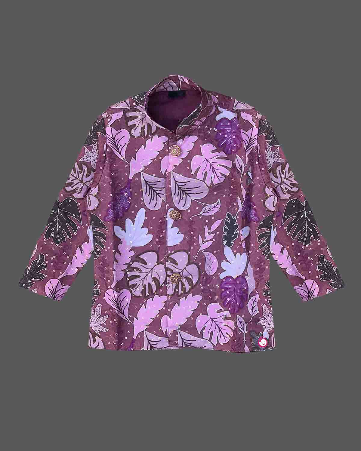 Boys leaf printed full sleeve kurta with dhoti set