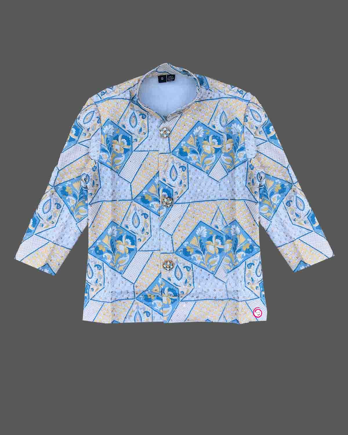 Boys elegant printed dhoti set - Sky Blue