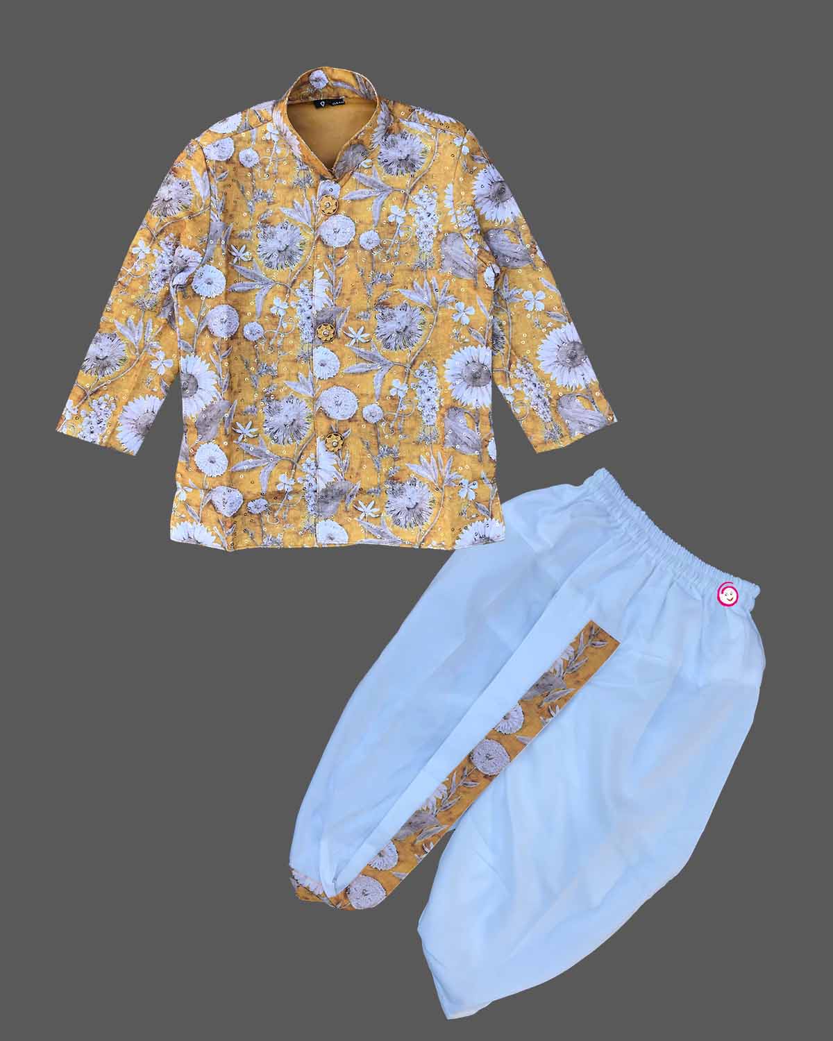 Boys floral designed full sleeve kurta with dhoti