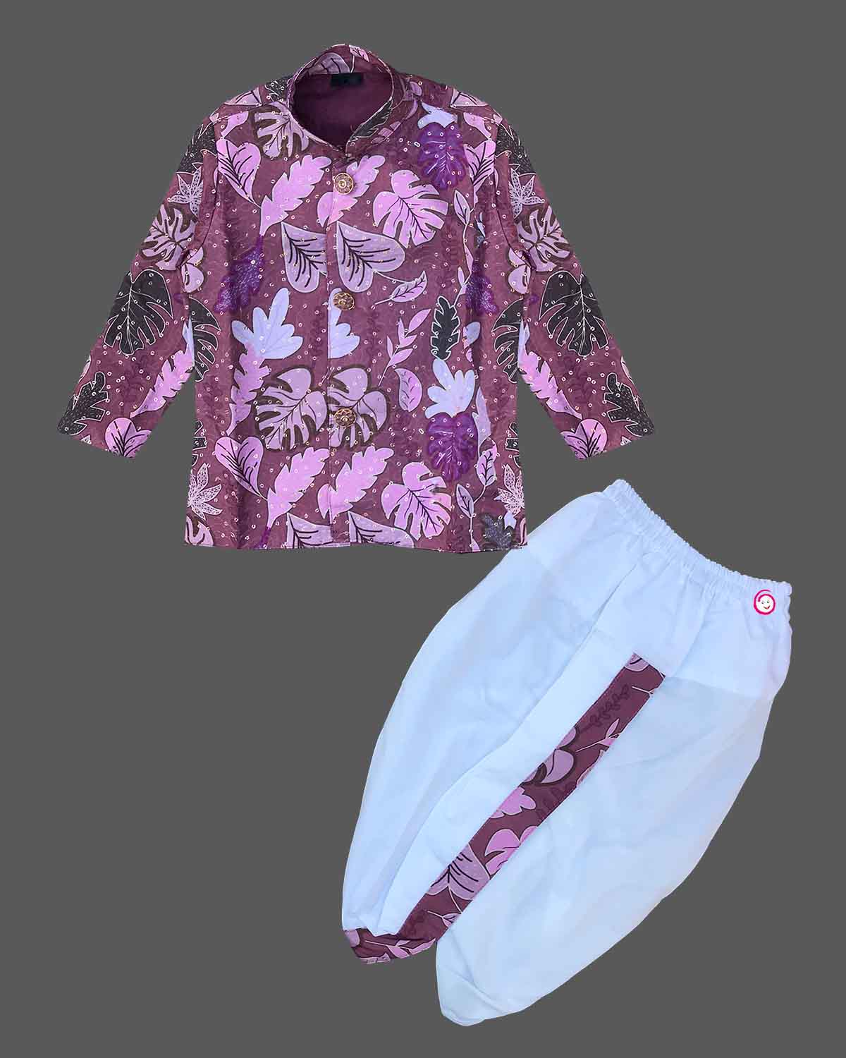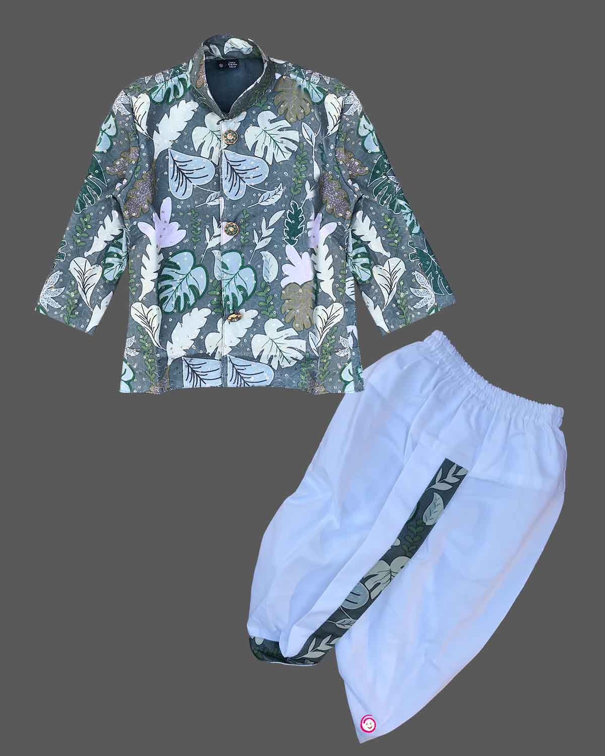Boys leaf printed kurta with dhoti set