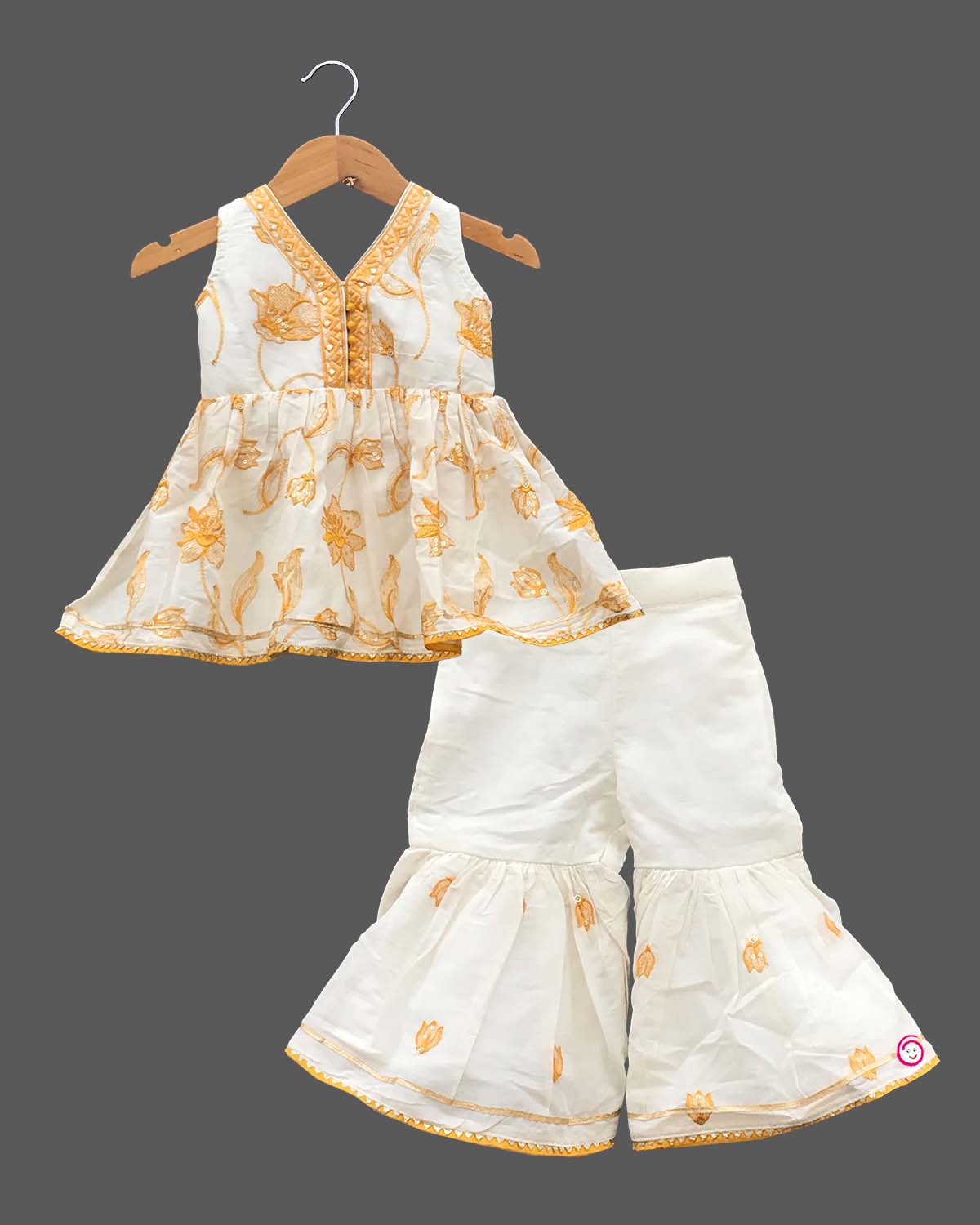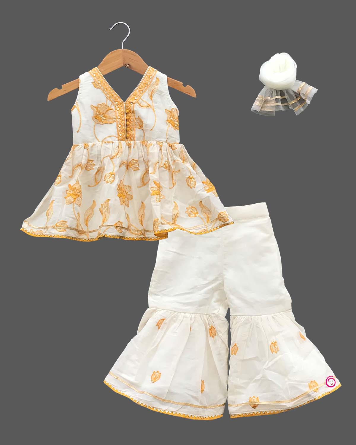 Girls elegant design top sharara & dupatta - Half White