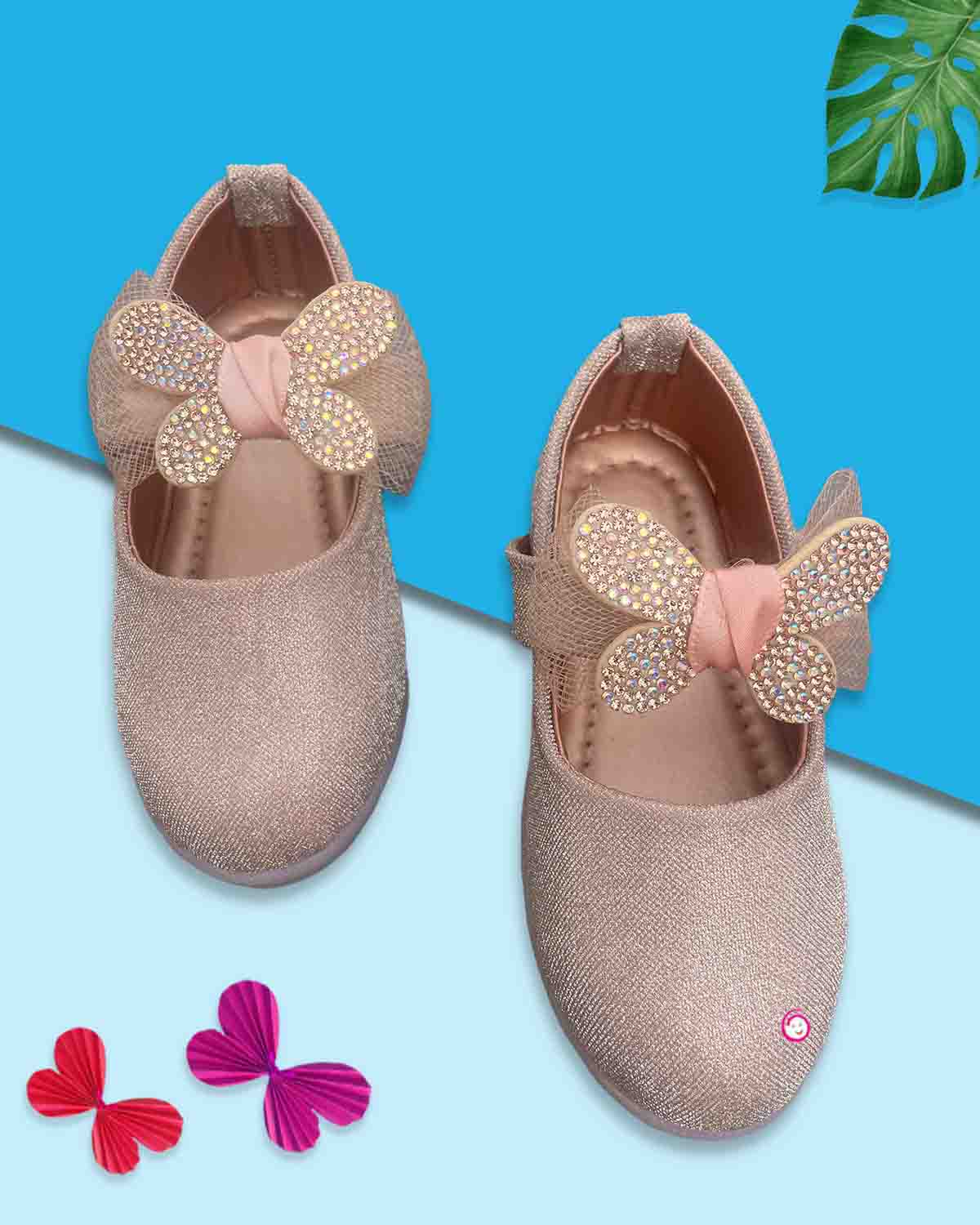 Girls elegant velcro party shoe - Peach