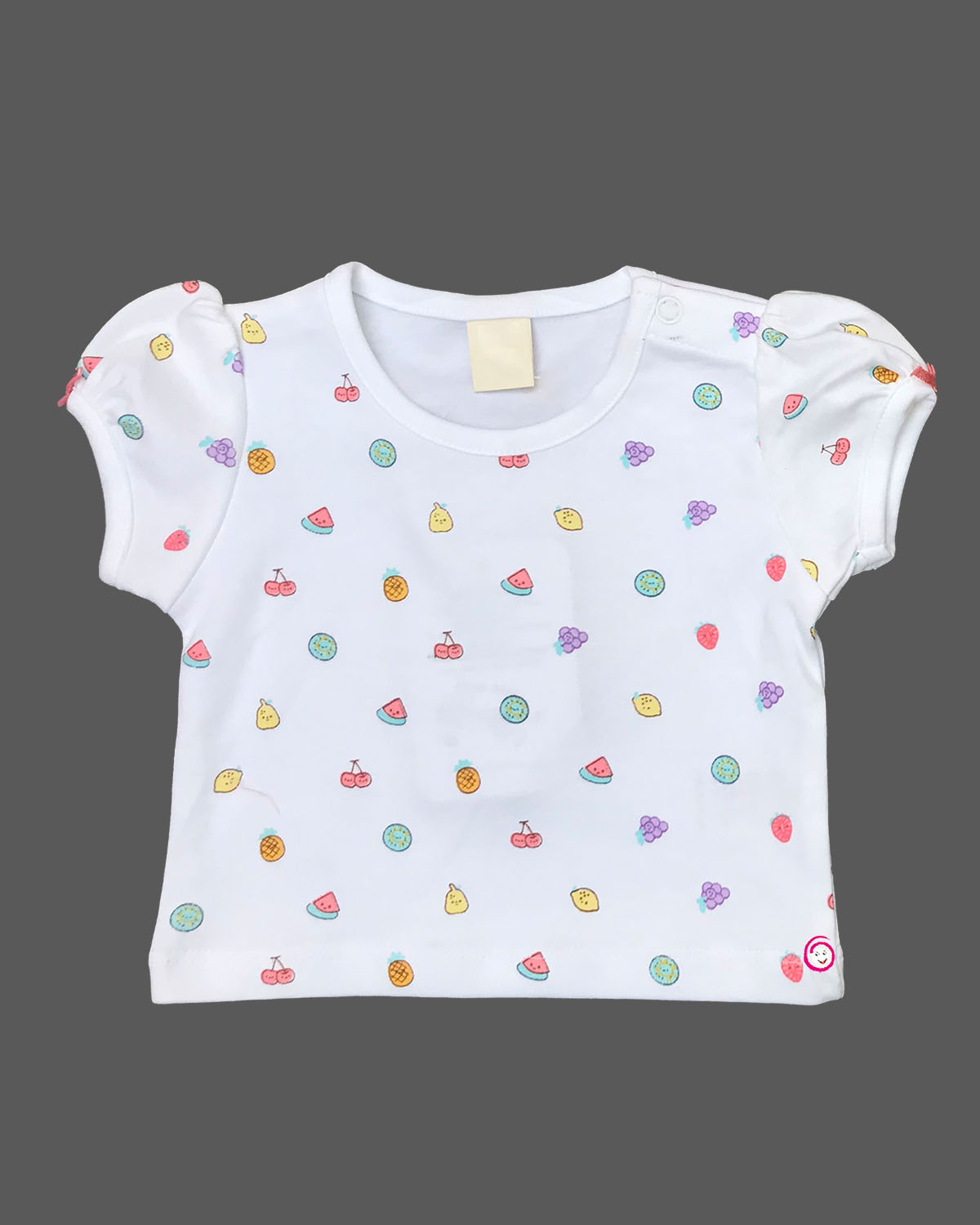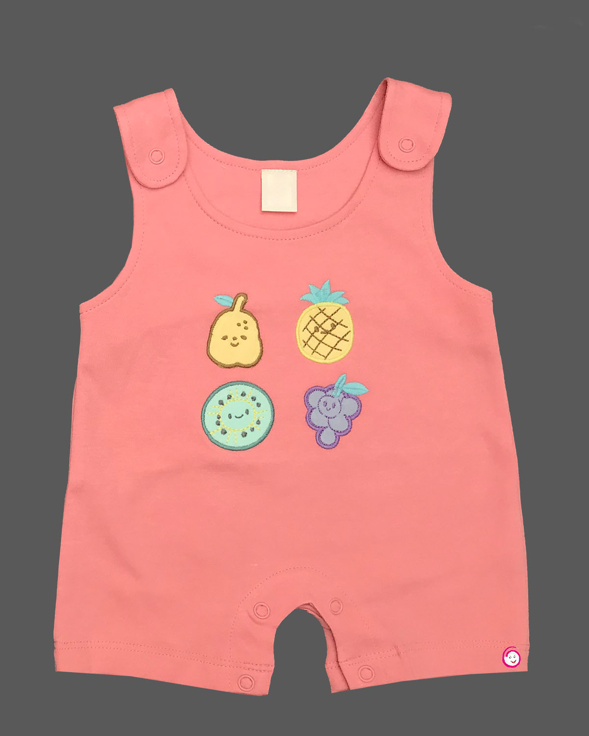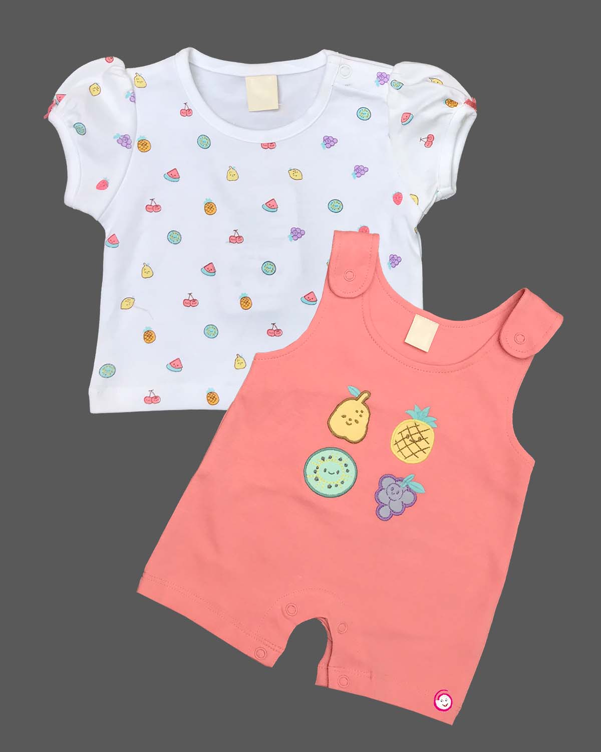 Girls fruit printed puff sleeve t-shirt with half romper - Peach