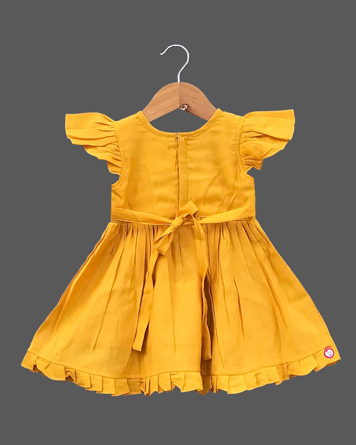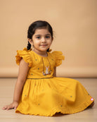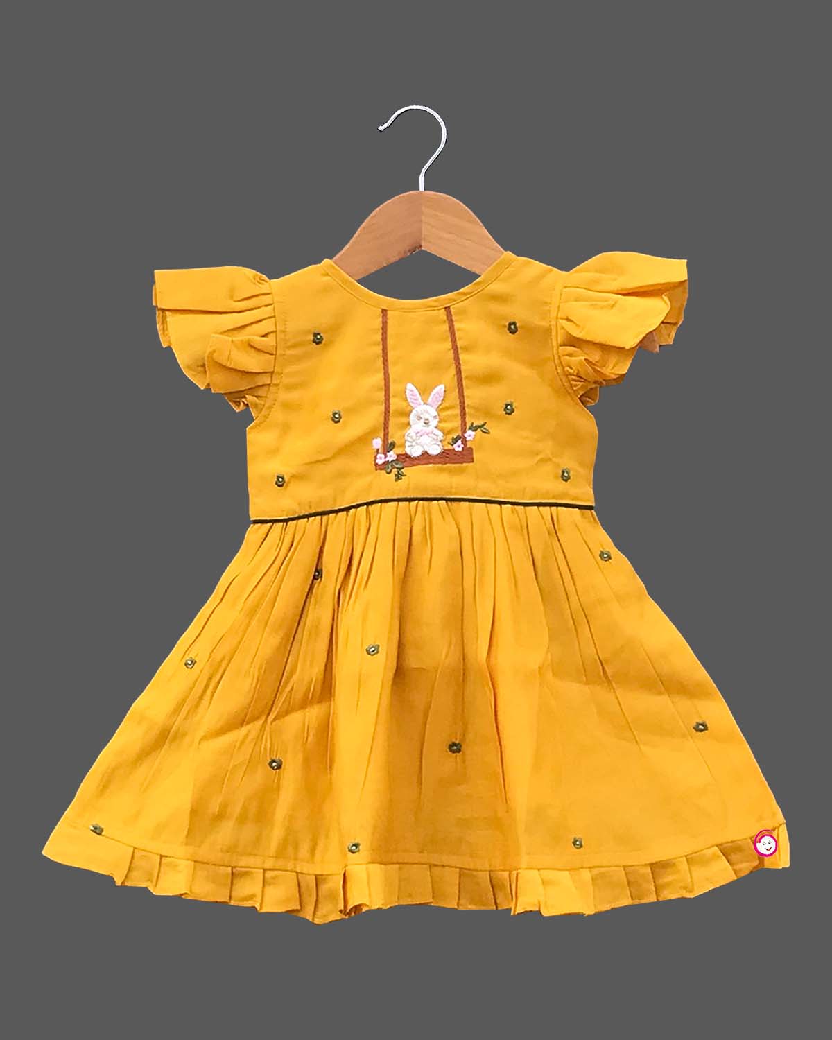 Girls bunny design embroidery chanderi frock - Mustard