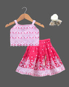 Girls elegant choli with printed skirt - Pink