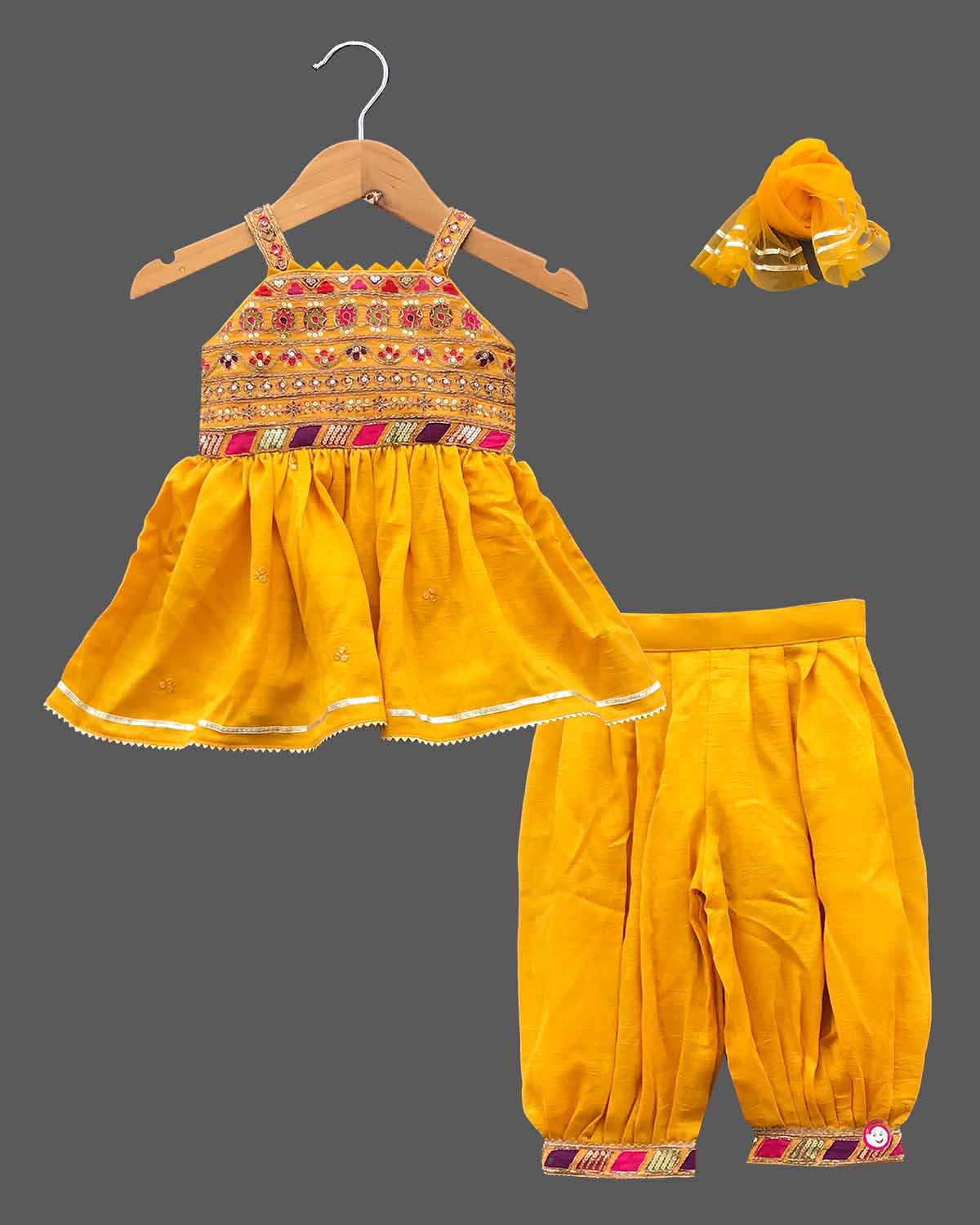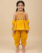 Girls elegant design top with patiyala set - Mustard