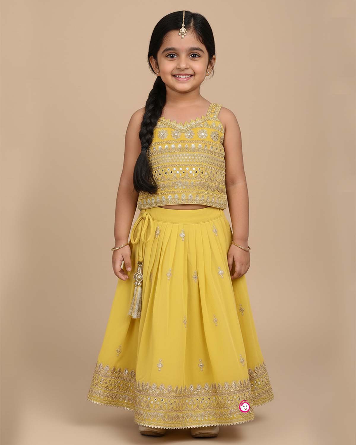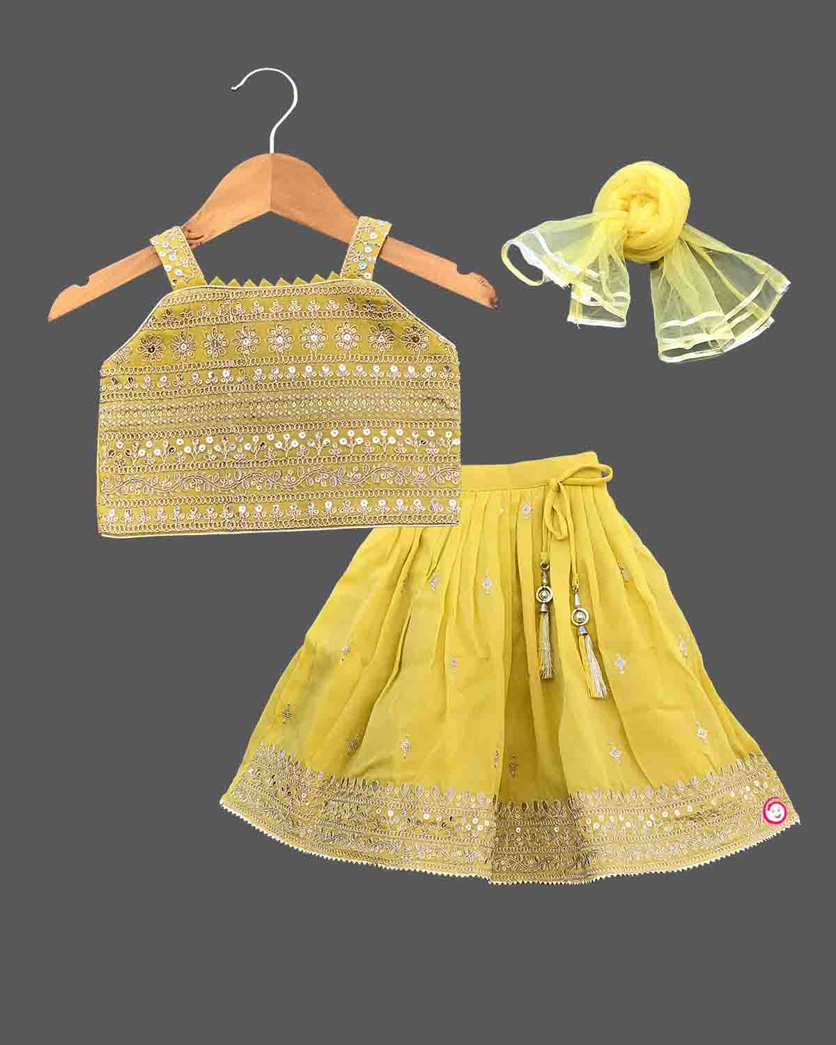 Girls printed ethnic top with skirt - Pastel Yellow