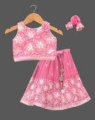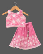 Girls sequin work top & skirt - Rose Pink
