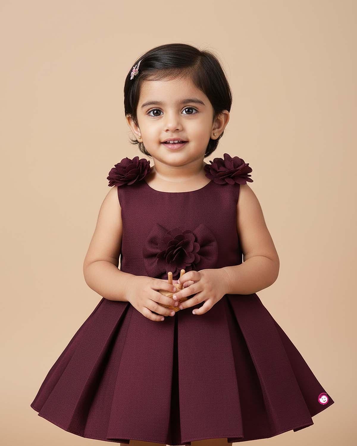 Girls flower applique sleeveless party frock - Wine