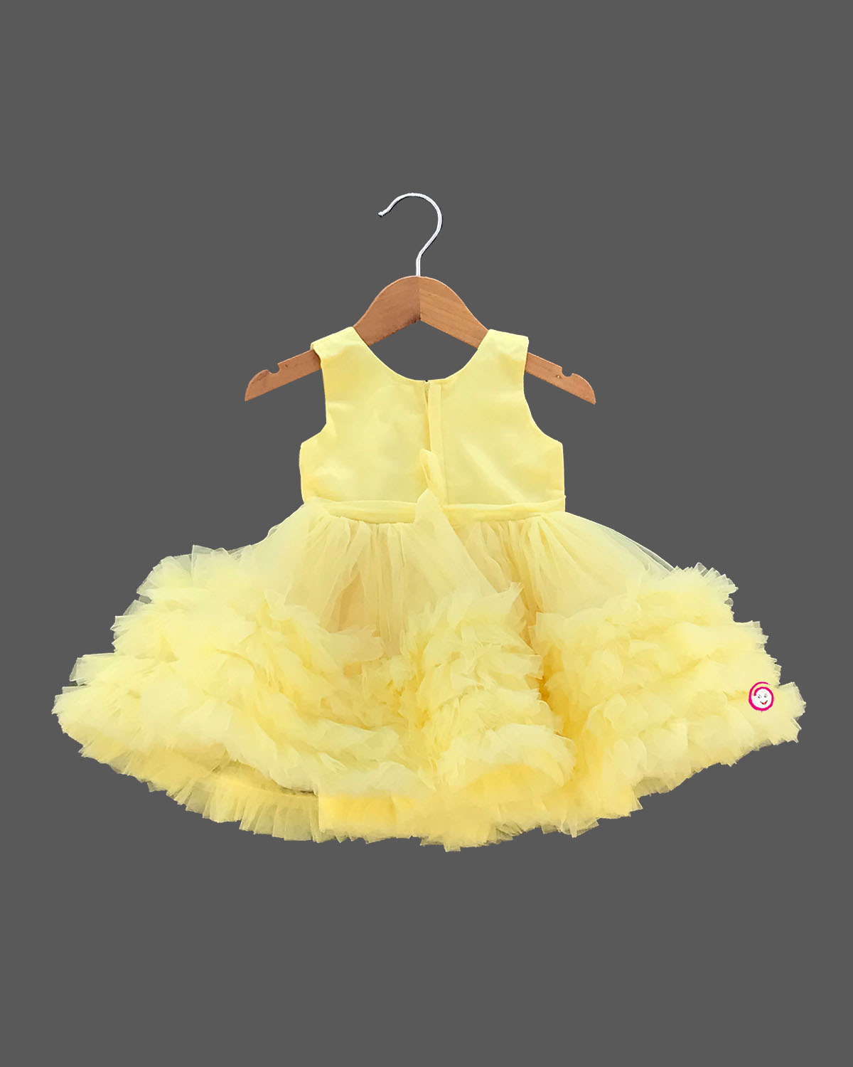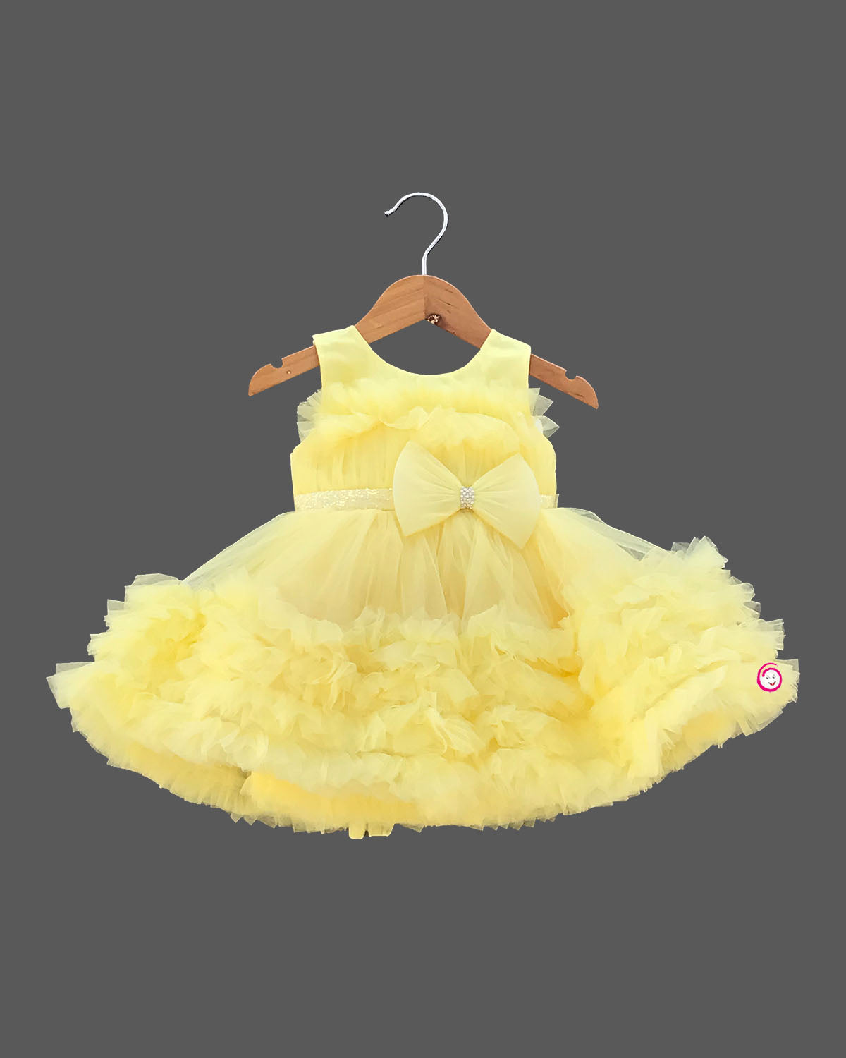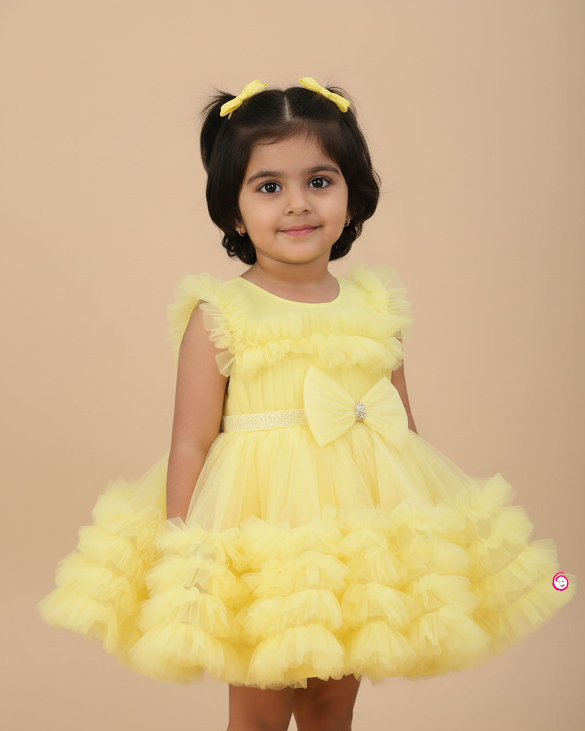 Girls bow applique ruffled party frock - Light Yellow
