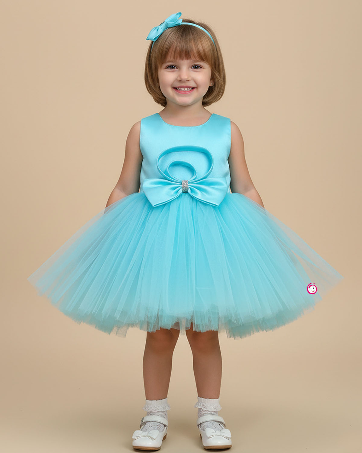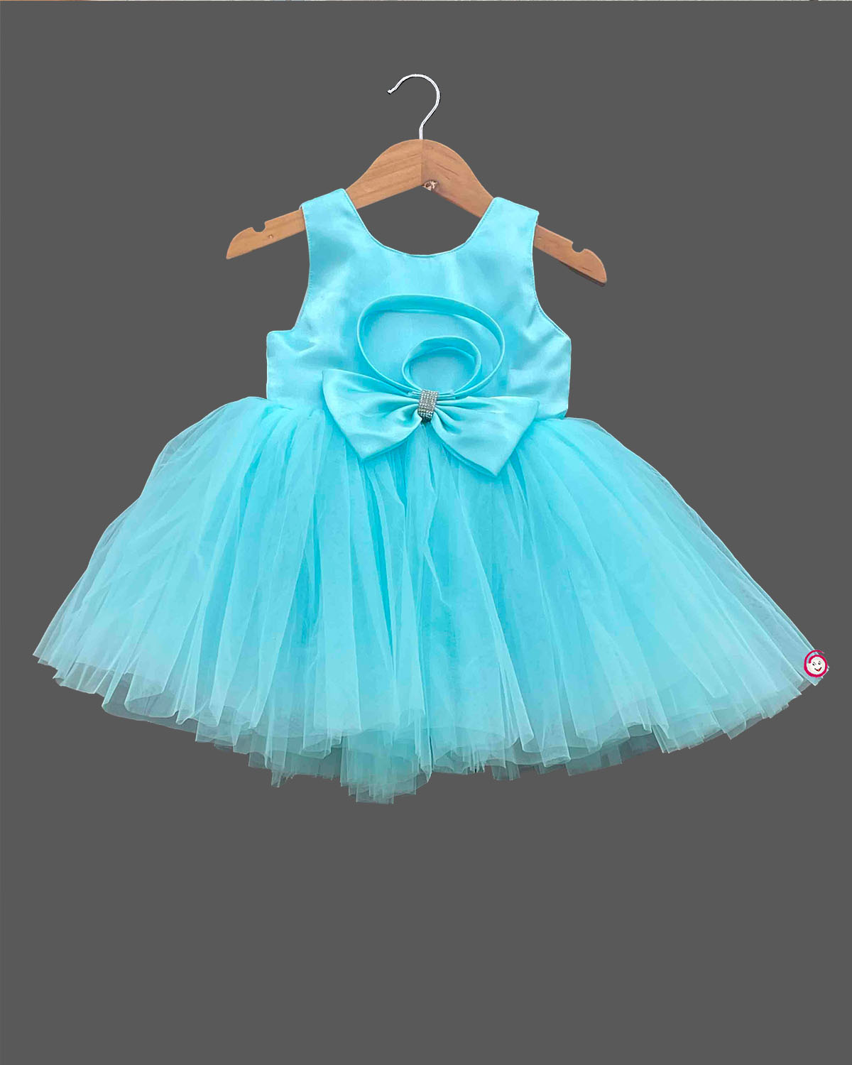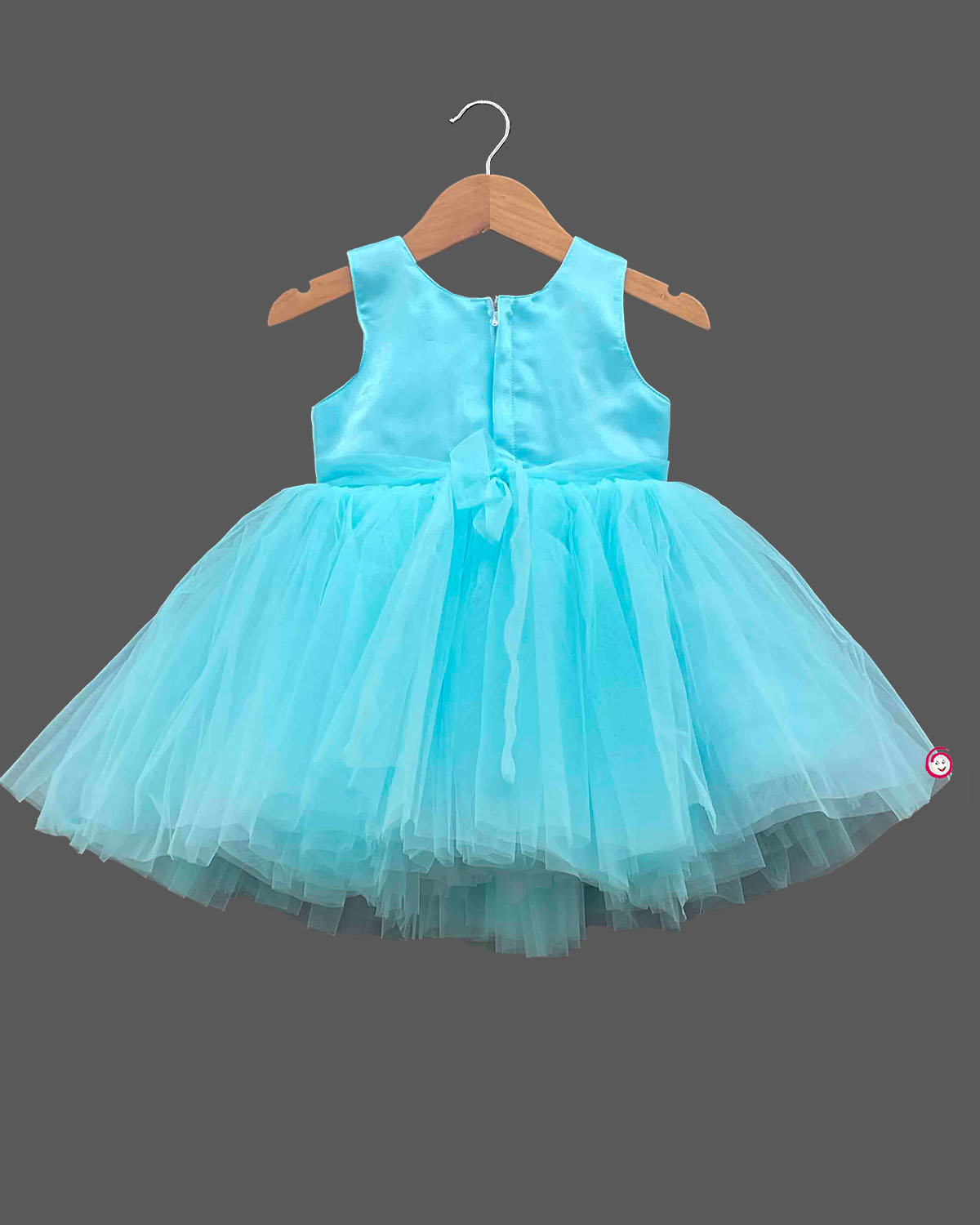Girls floral partywear frock - Sky blue