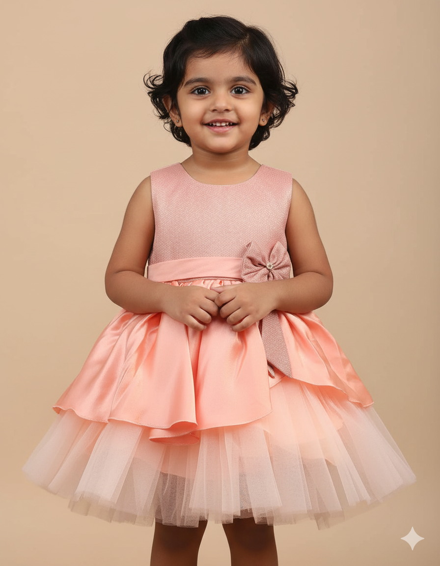 Girls ruffled bow with partywear frock - Melan