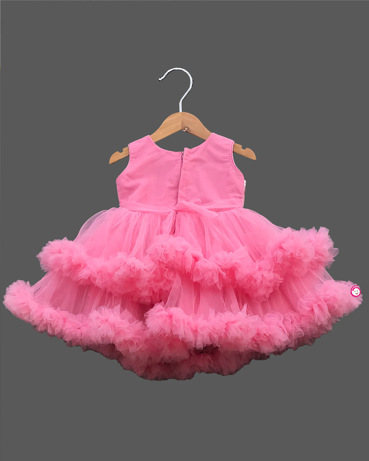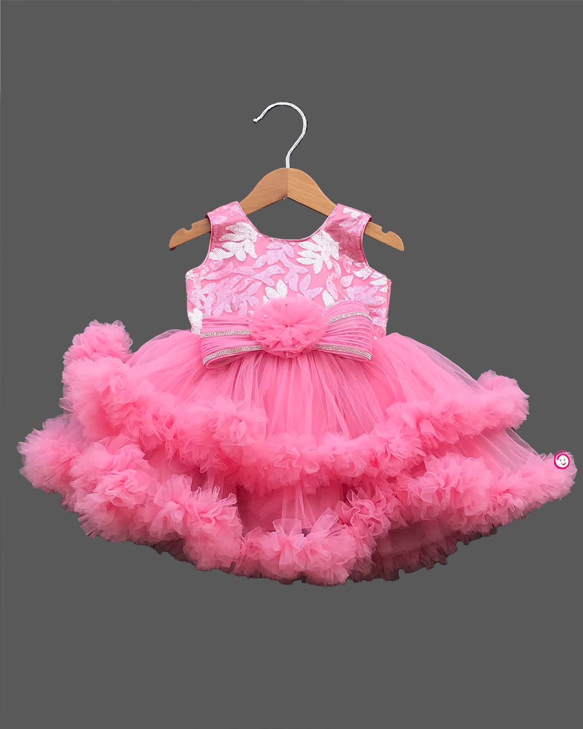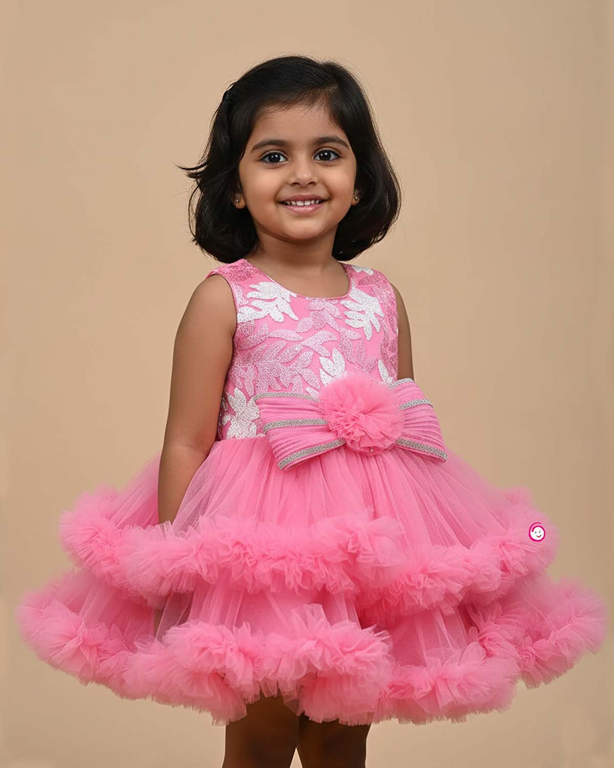 Girls ruffled design bow party frock - Peach