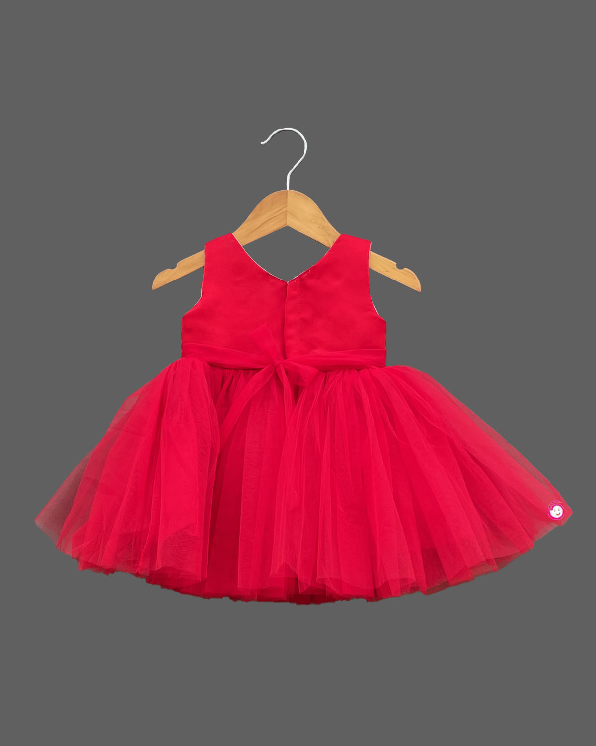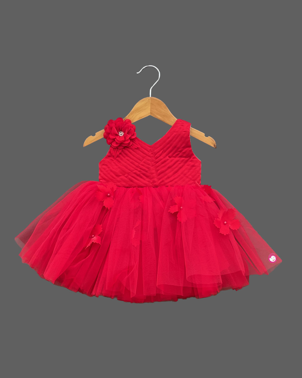 Girls ruffled with floral applique partywear frock - Red