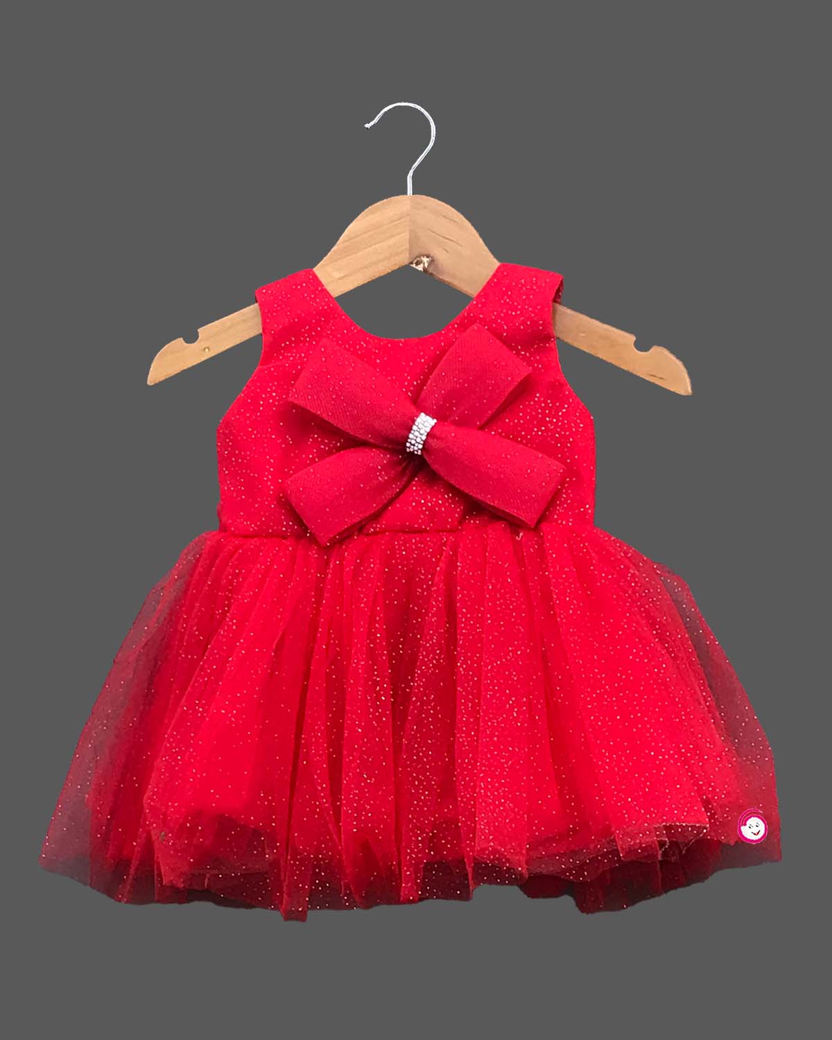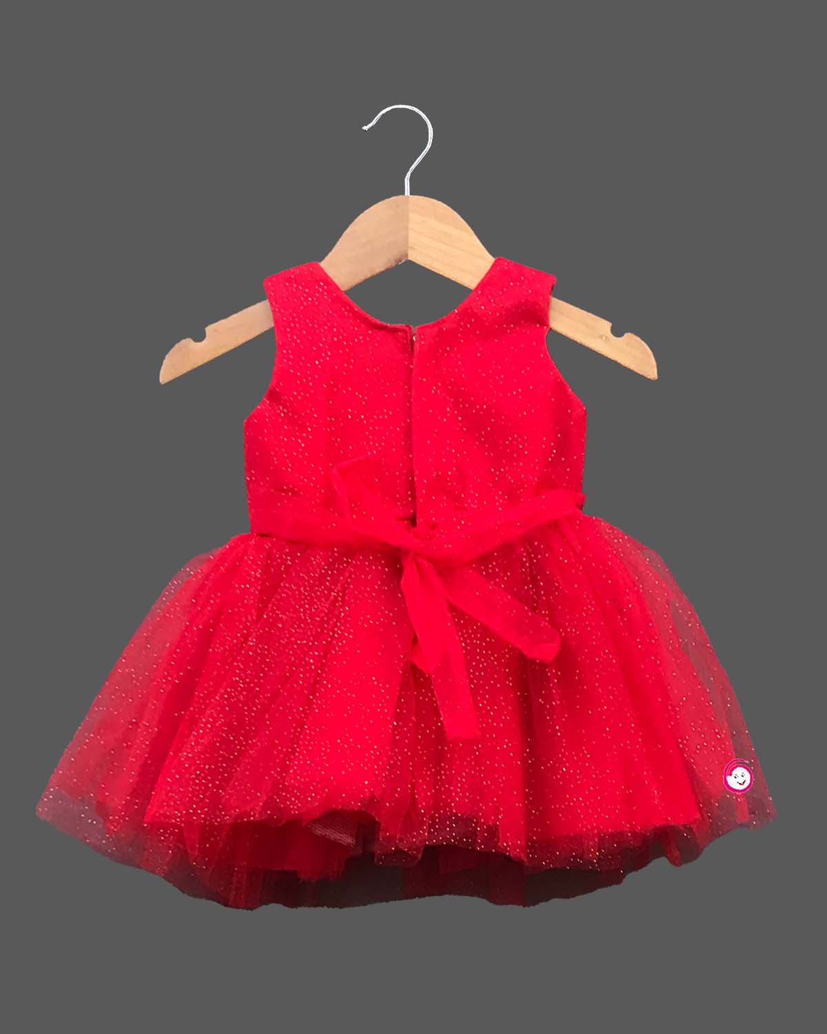 Girls flower embellished cold shoulder with attached tail frock - Peach