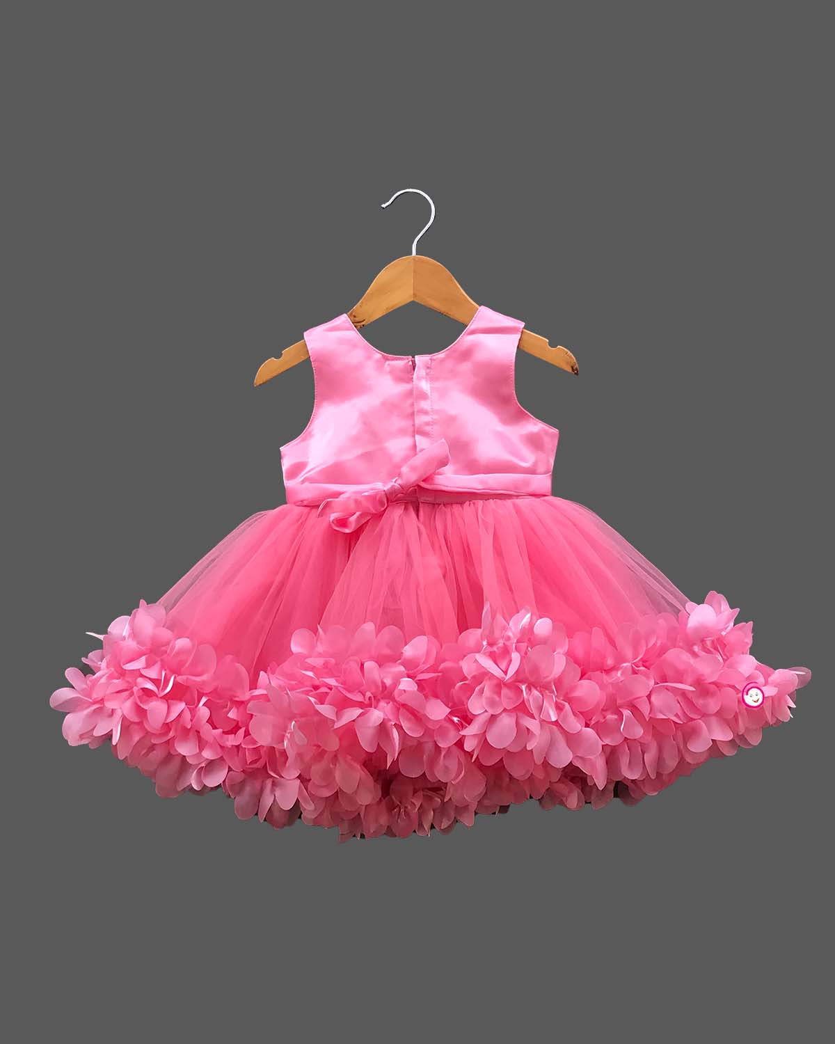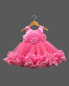 Girls ruffled with floral applique partywear frock - Baby Pink
