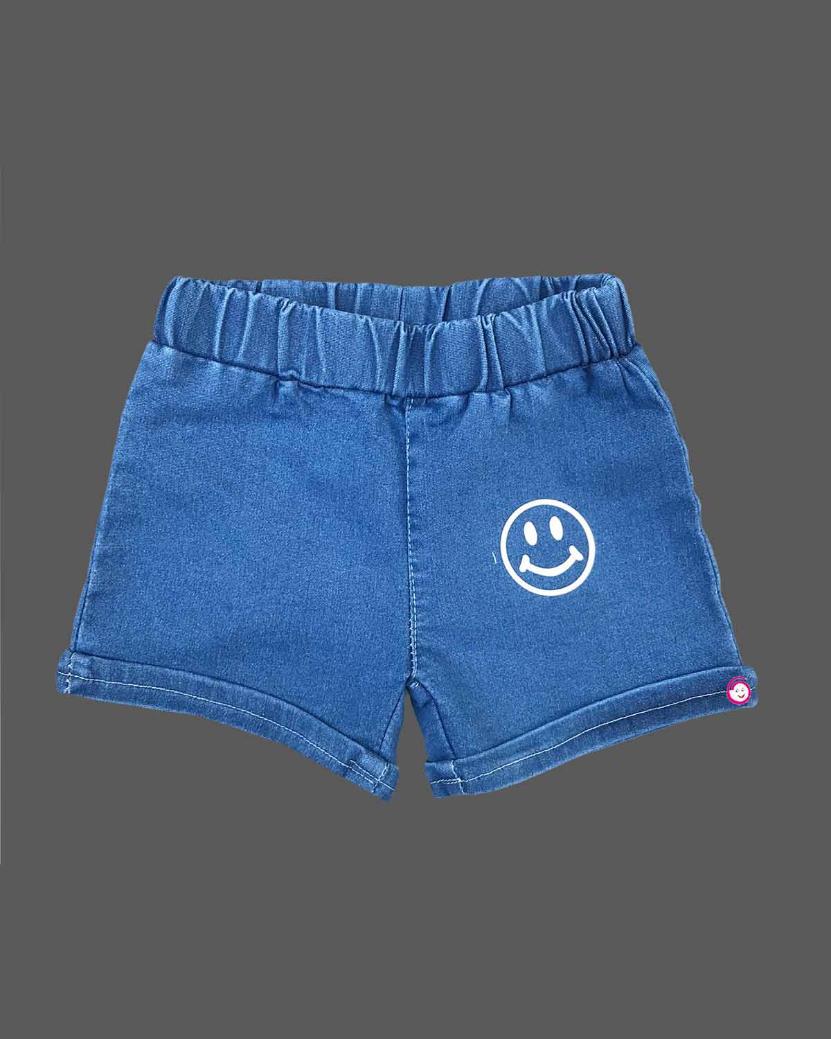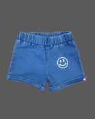 Girls smiley printed jean shorts - Royal Blue