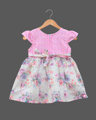 Girls flower print with bow casual frock - Pink