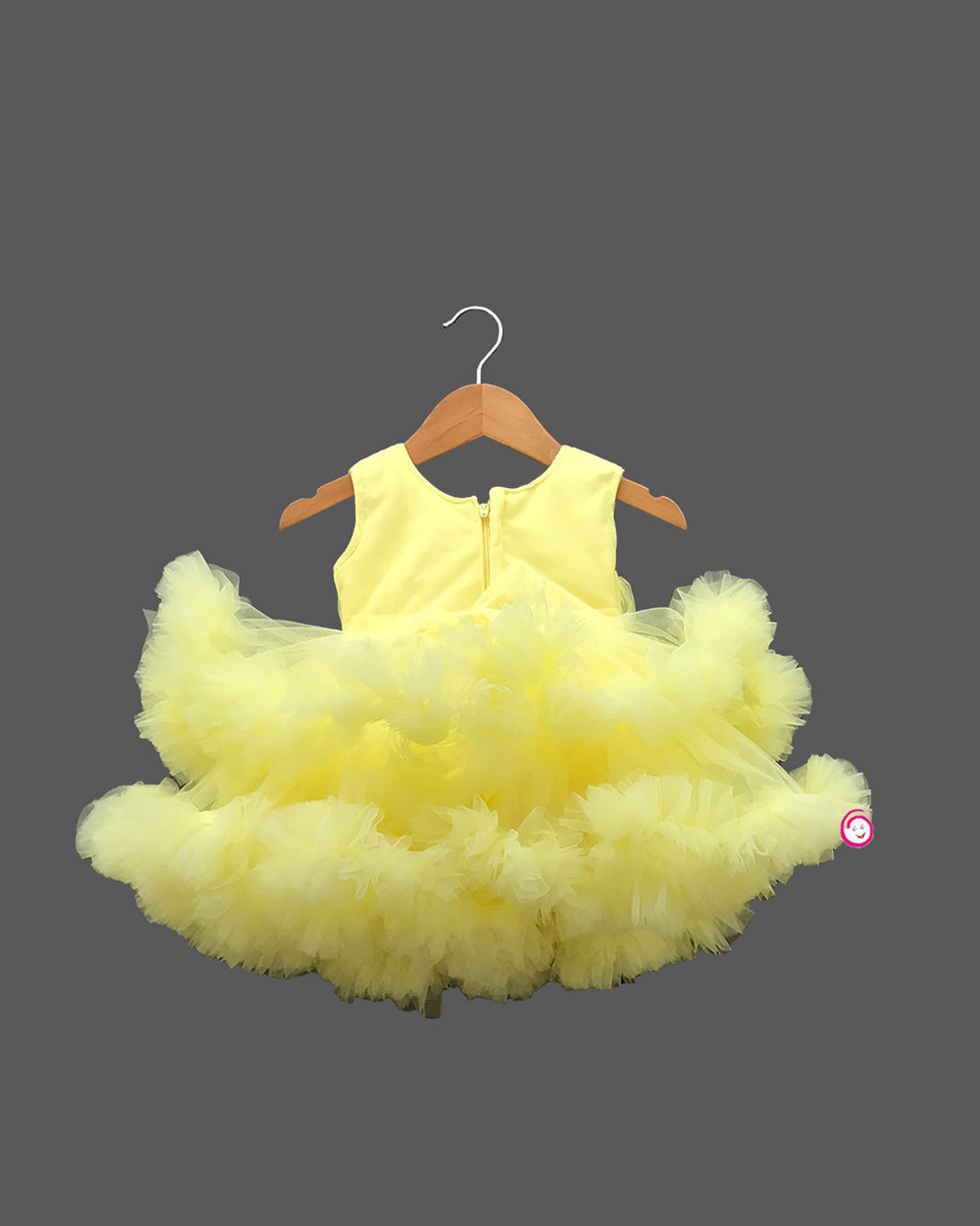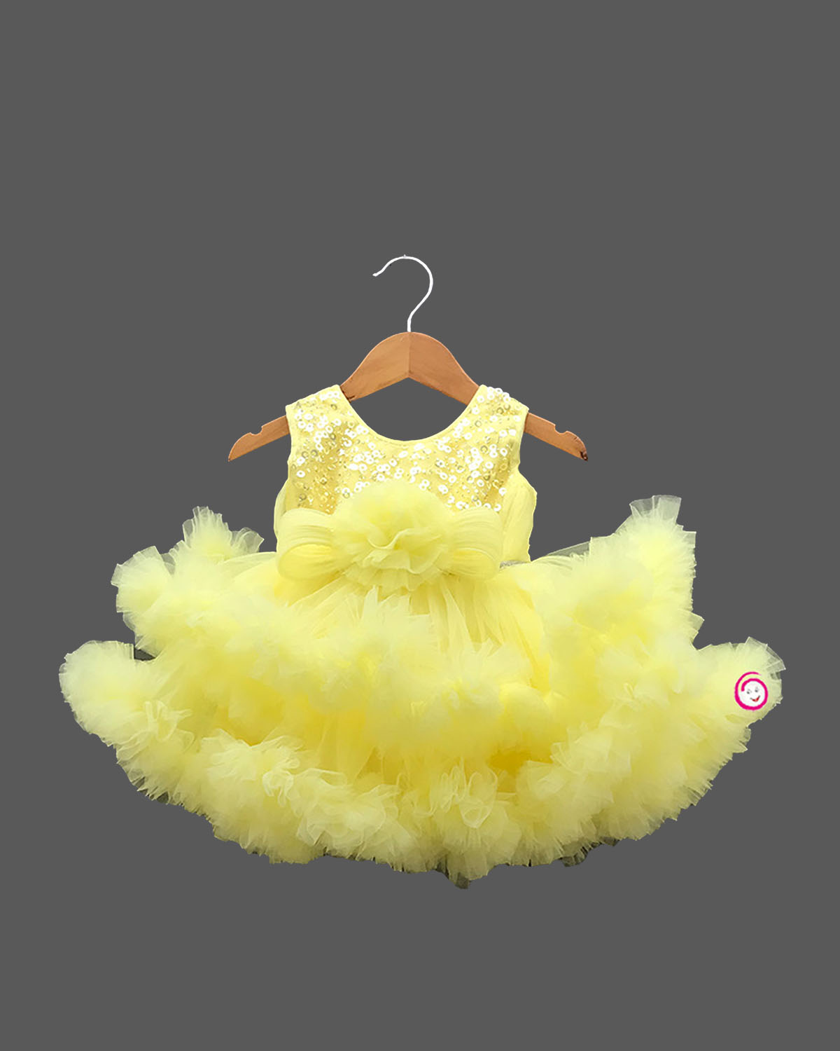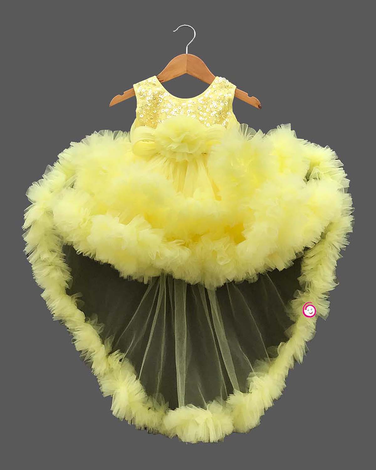 Girls bright yellow color with fluffy ruffled sequin frock