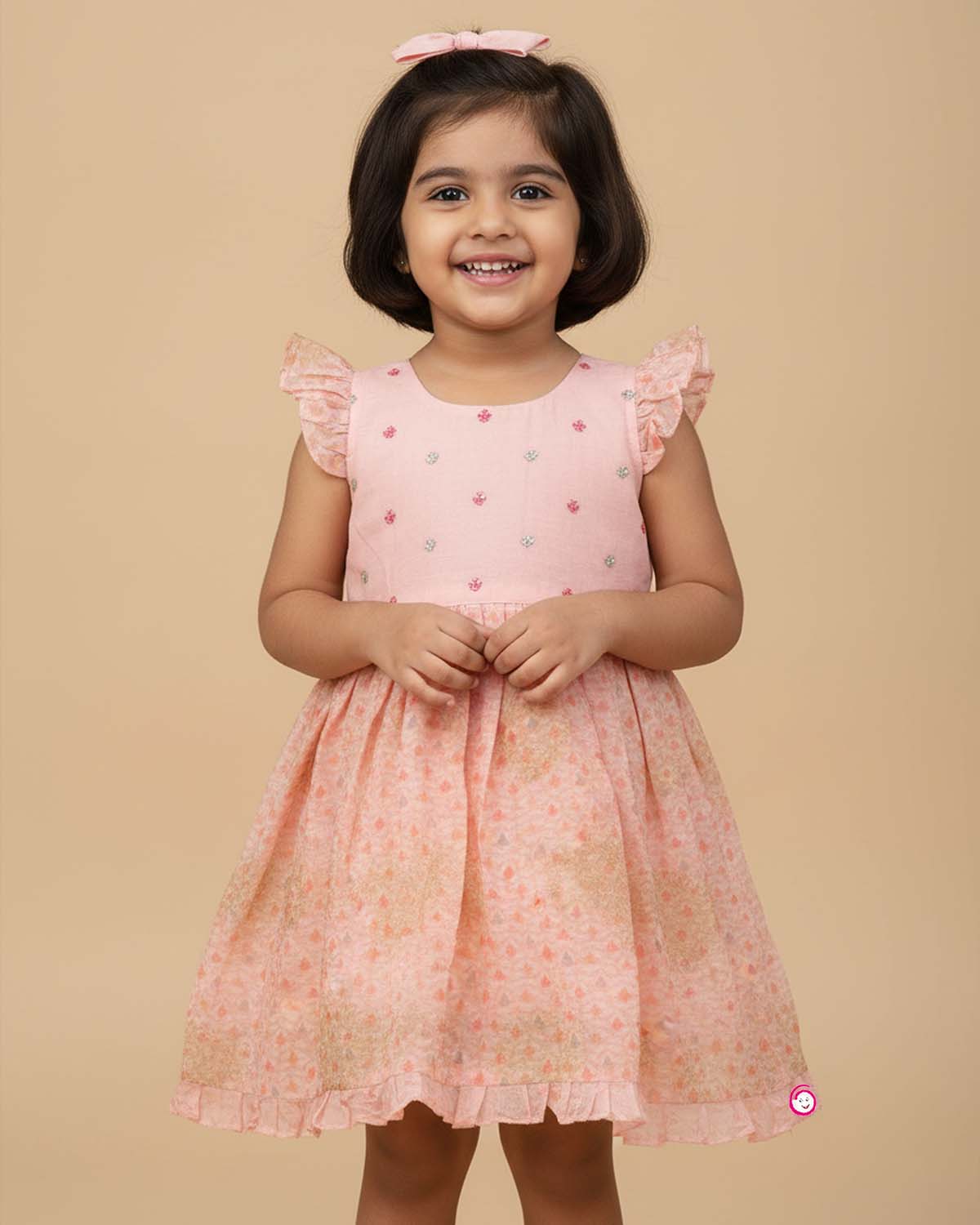 Girls diamond embroidery traditional frock - Peach