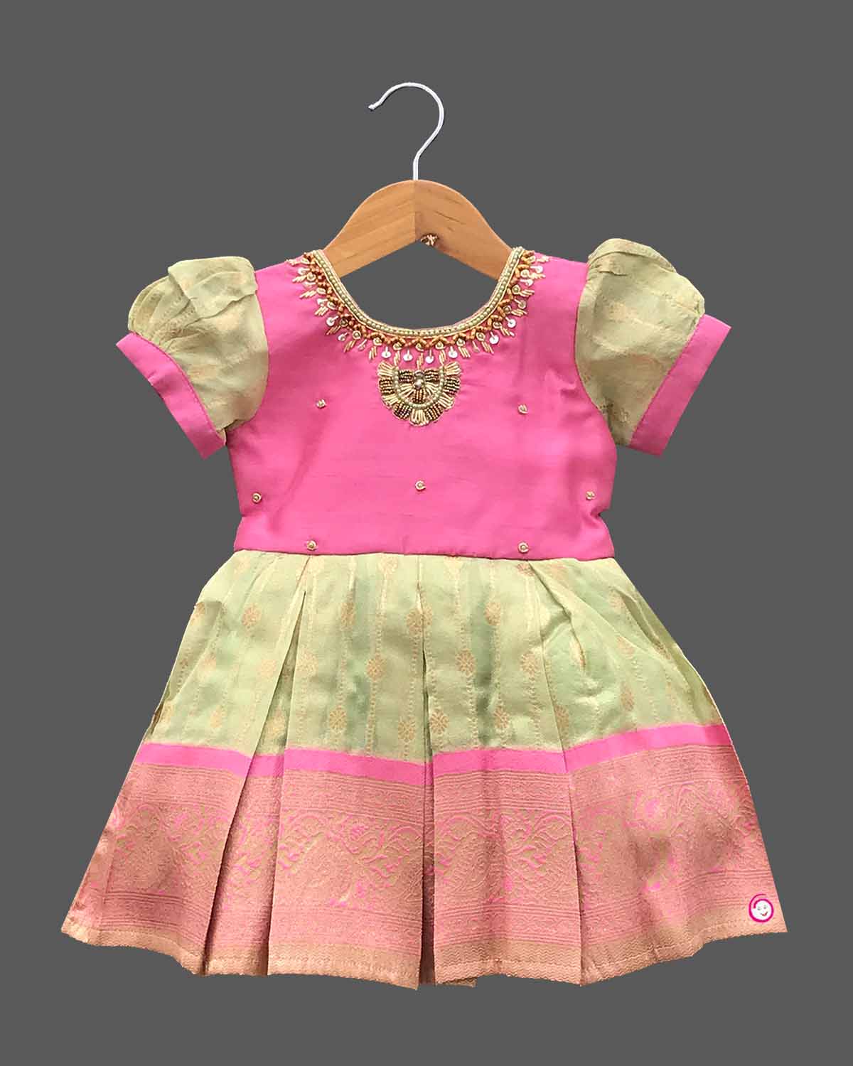 Girls elegant design traditional frock - Pista Green