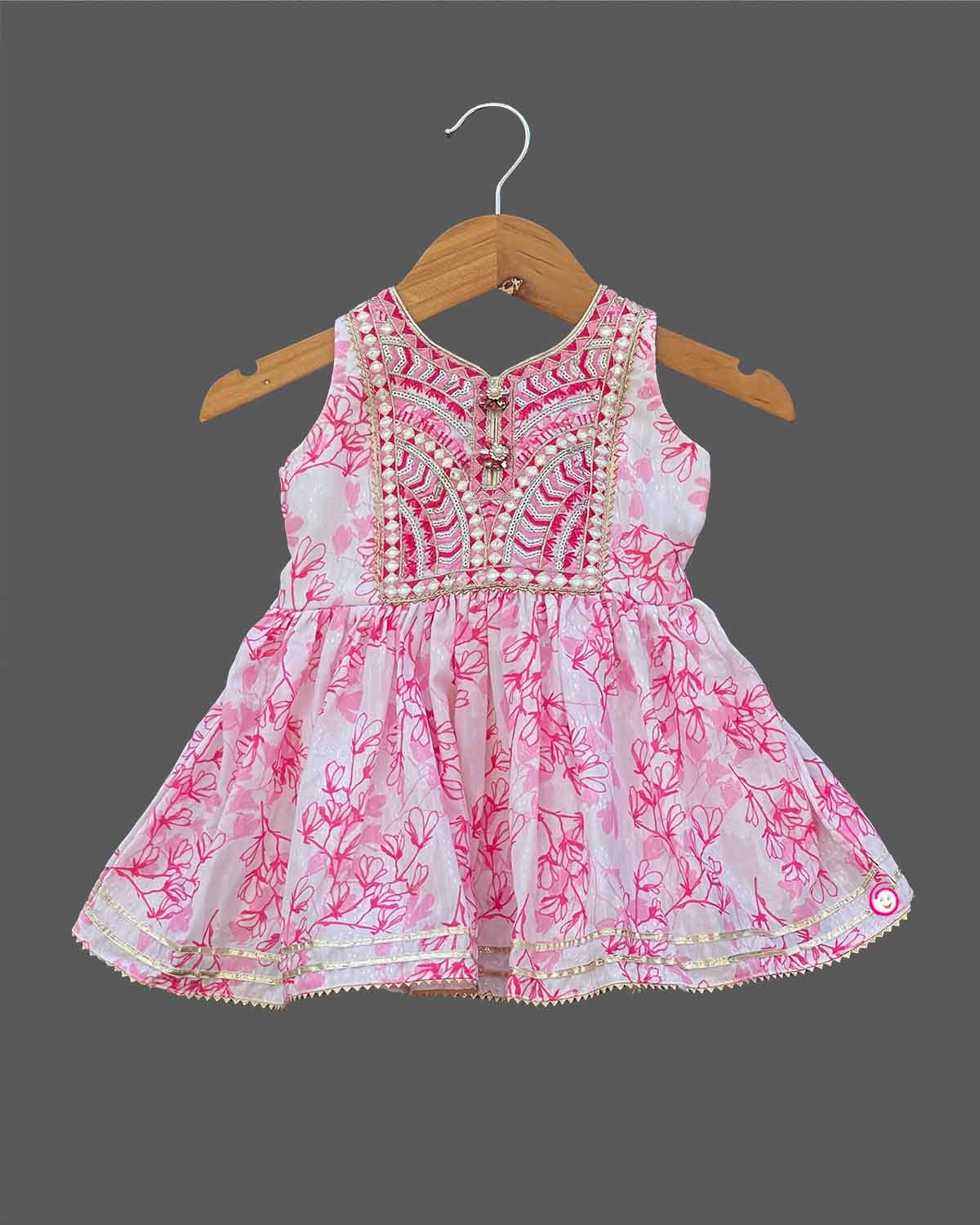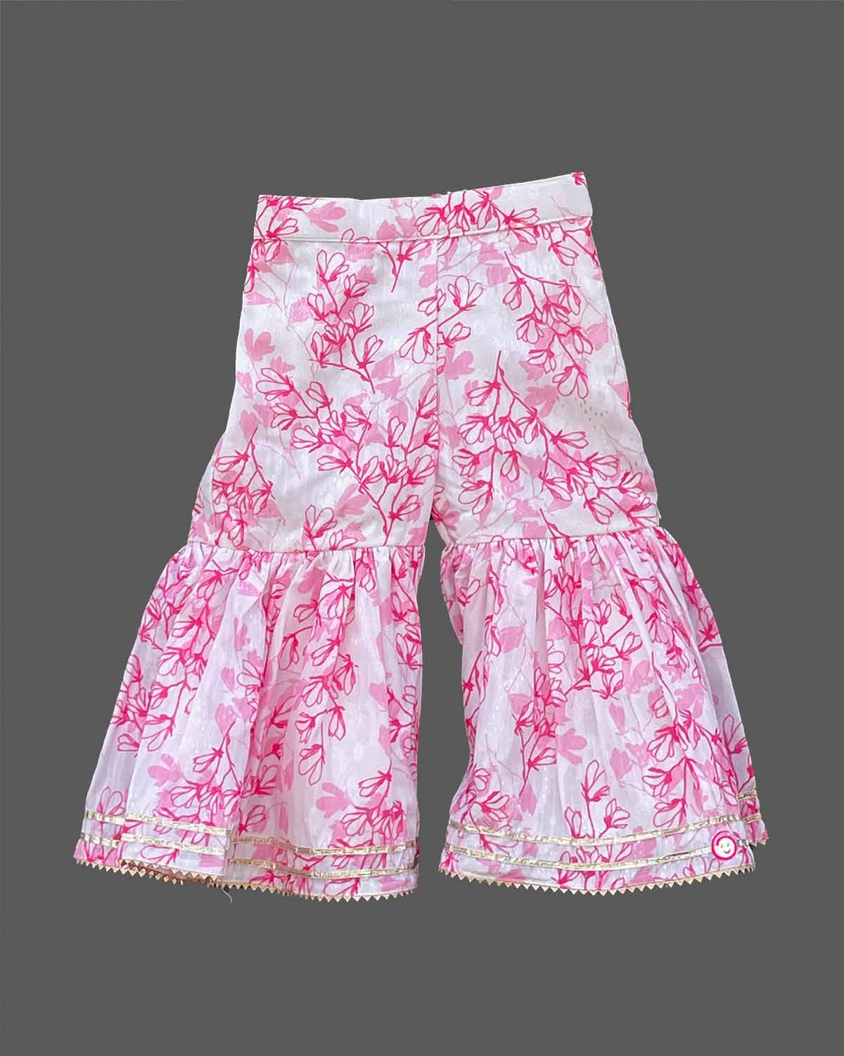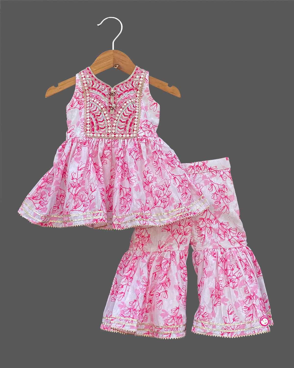 Girls floral embroidery crop top with sharara - Baby Pink