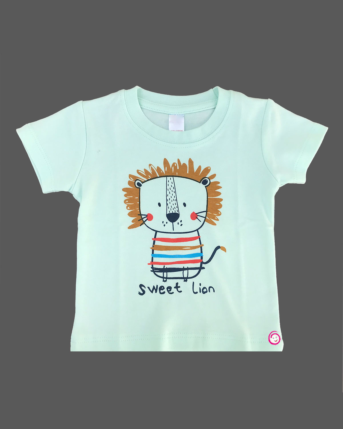 Girls sweet lion printed half sleeve t shirt - Sea Green